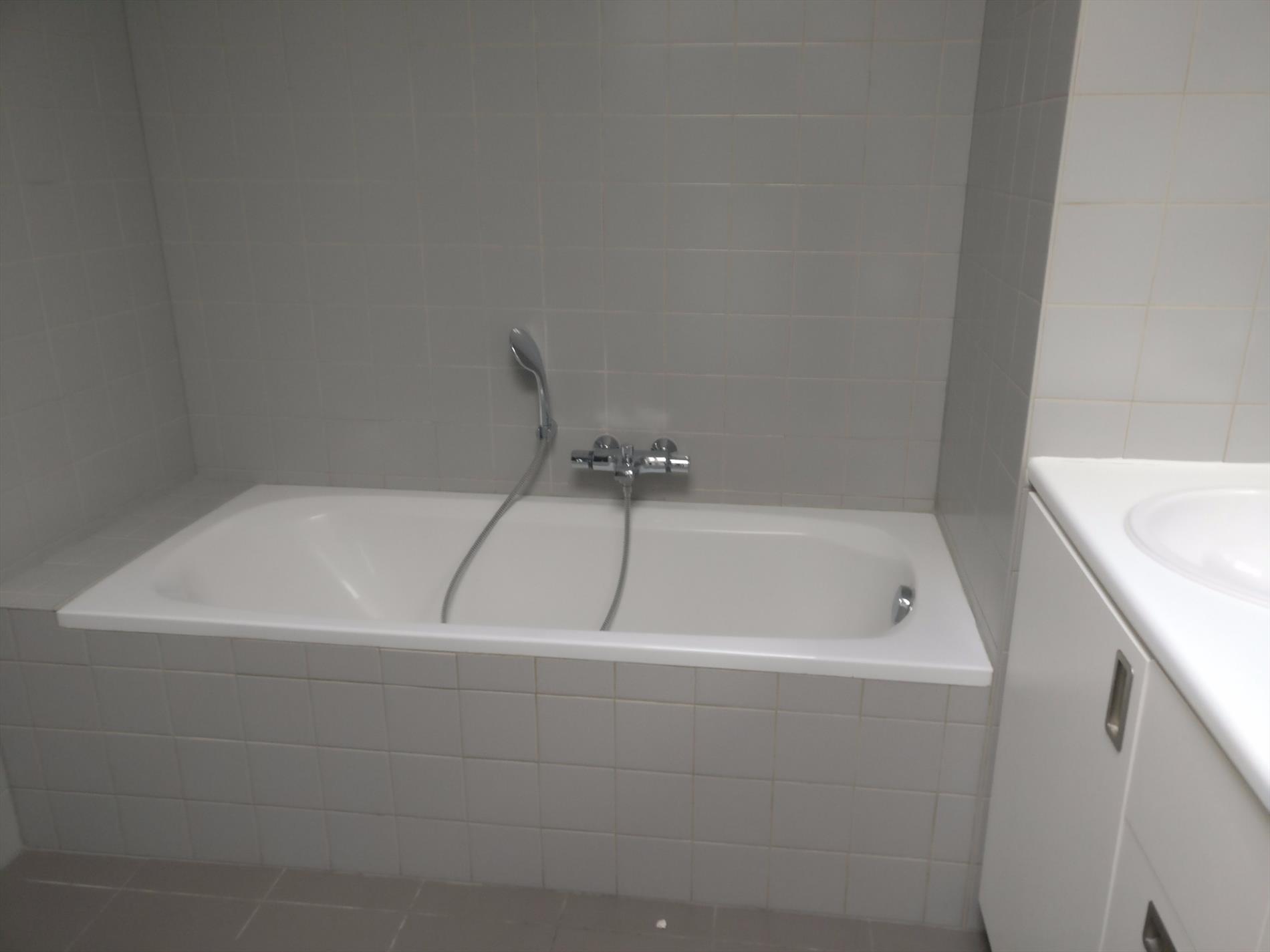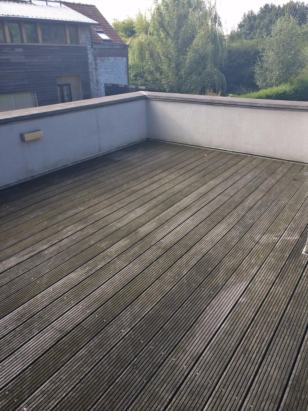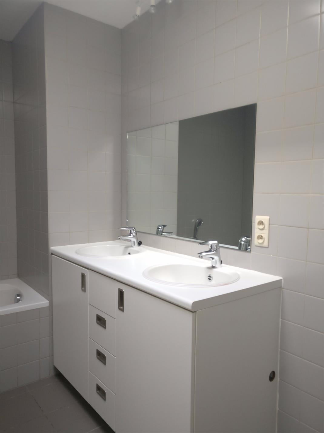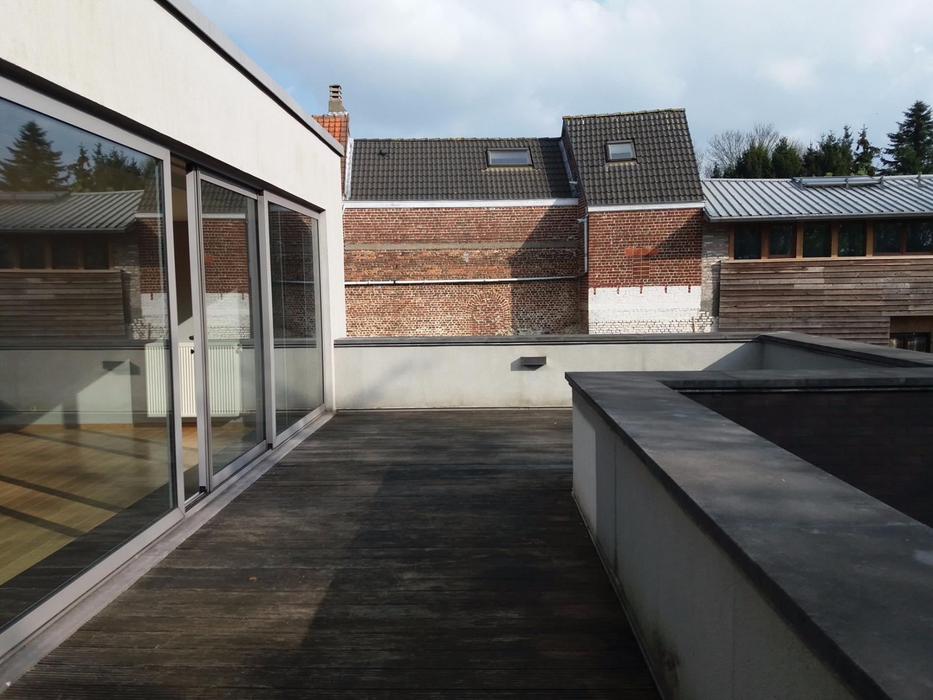 Appartement op de eerste verdieping (geen lift). Samenstelling: hal, woonkamer (25 m²) met aansluitend terras (20 m²), semi-open keuken ingericht met toestellen, toilet, 3 slaapkamers, badkamer met bad/douche. Geen lasten. Onmiddellijk beschikbaar.