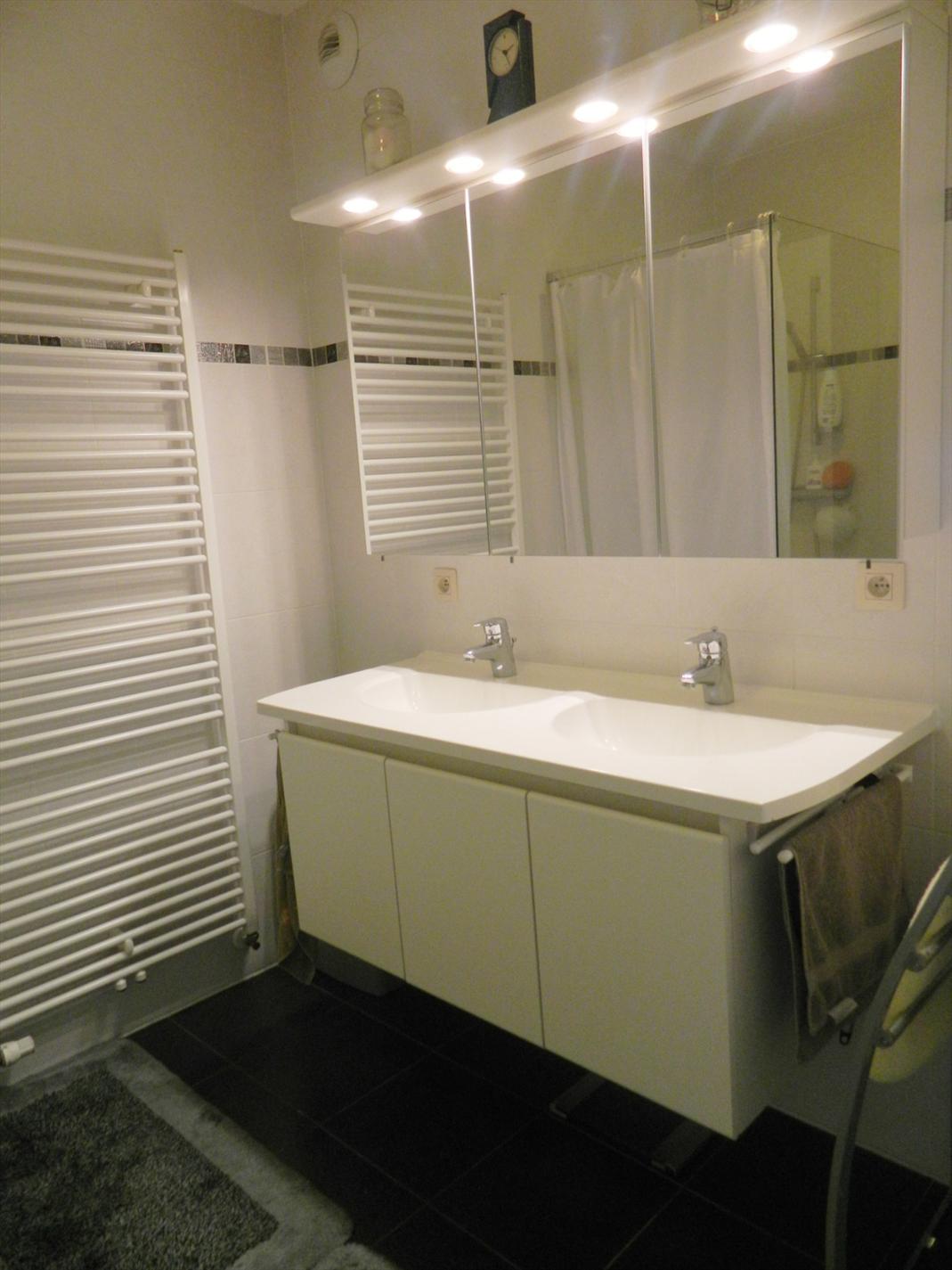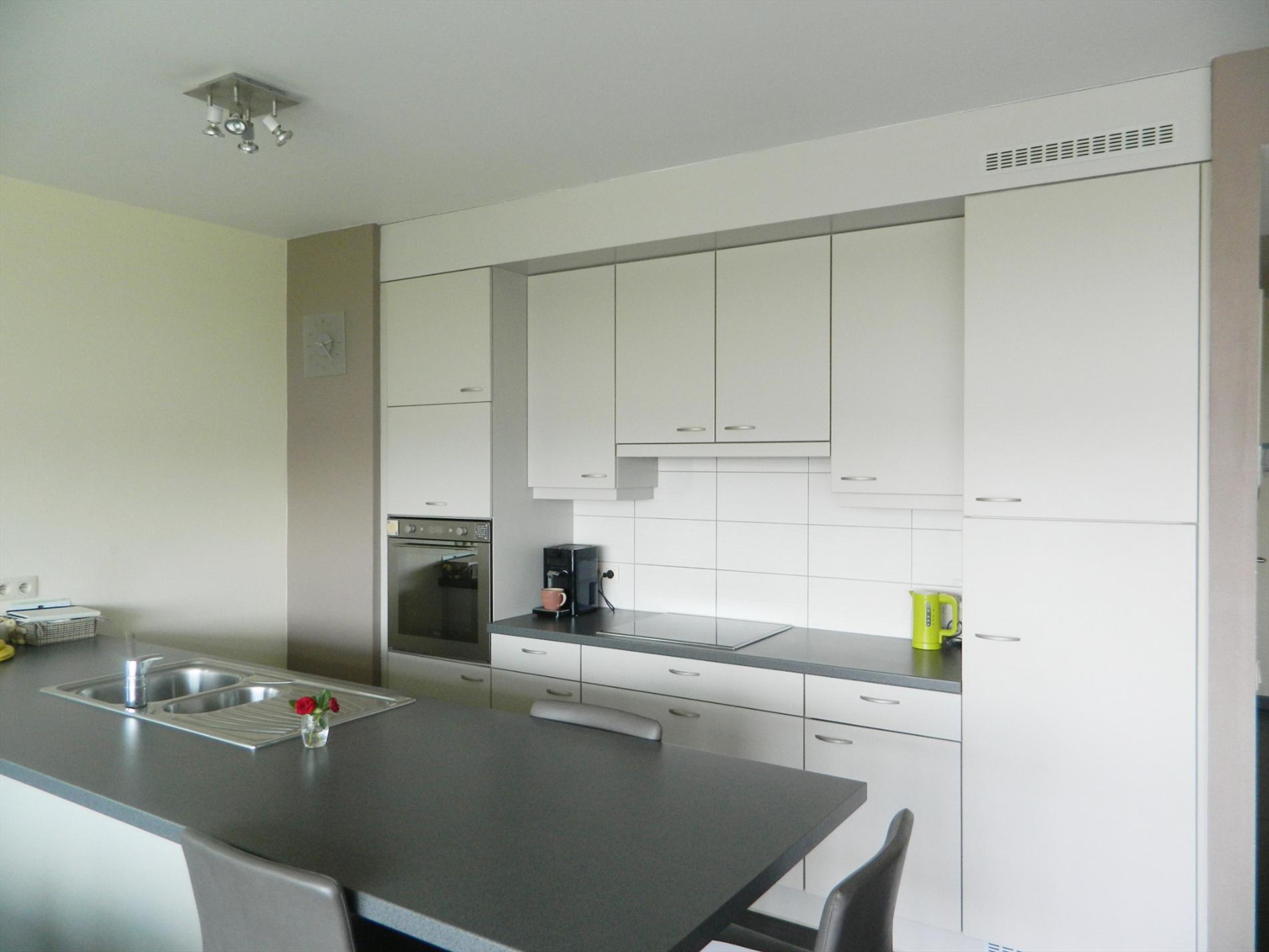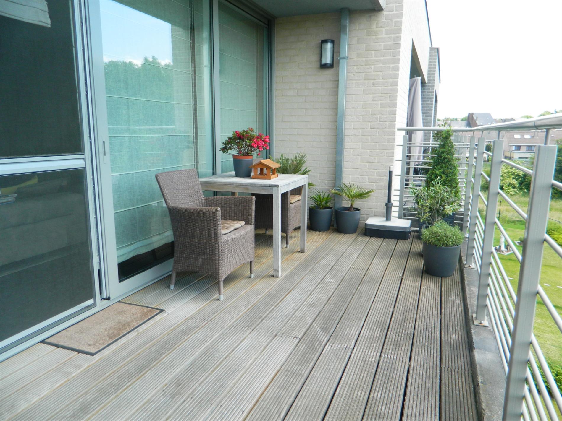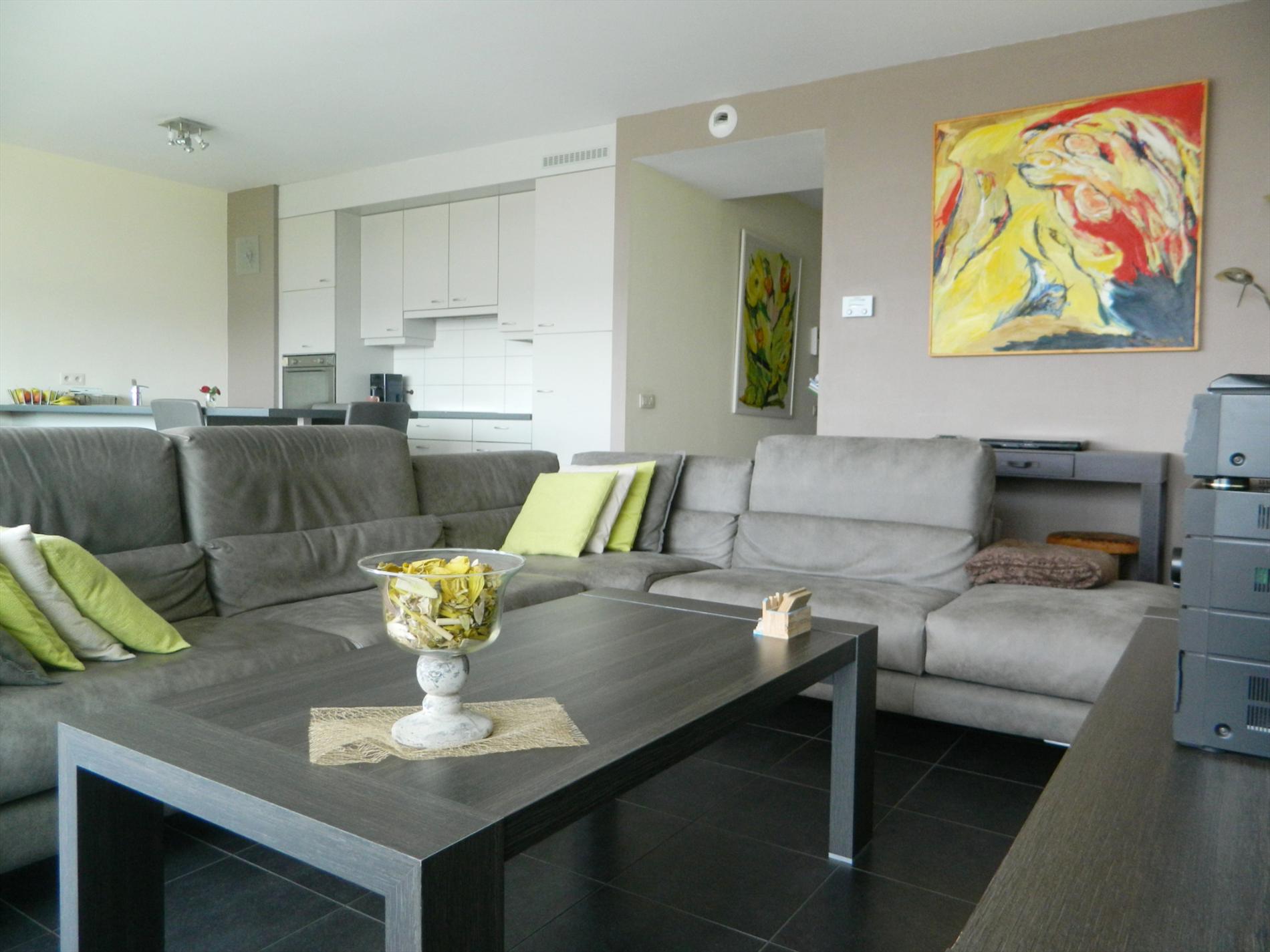 Mooi appartement op het tweede verdiep in een recent gebouw. Indeling: inkomhal, leefruimte (39,6 m²), geïnstalleerde keuken met toestellen, zuidgericht terras met kleine berging, apart toilet, berging met aansluiting voor wasmachine, badkamer met dubbele lavabo en inloopdouche, twee slaapkamers (9,2 m² en 12 m²). Vliegenramen voorzien in de slaapkamers en in de living. Garagebox en twee bergruimtes op kelderniveau inbegrepen. Mogelijkheid tot huren van een extra autostaanplaats.