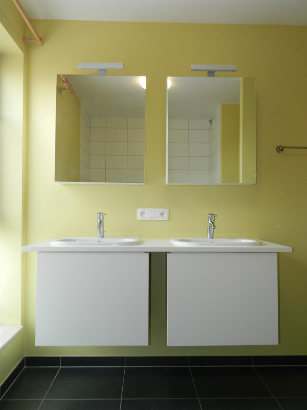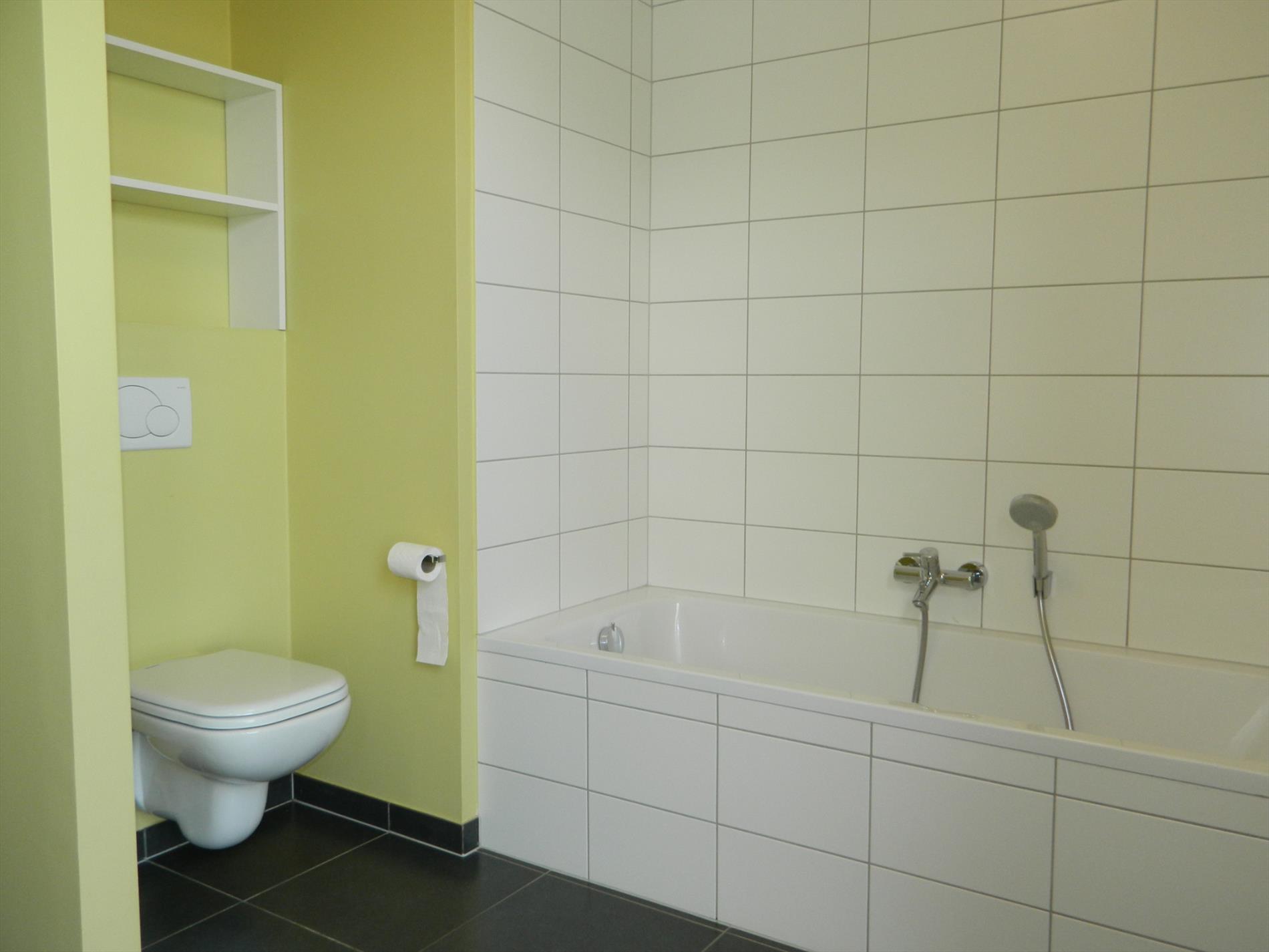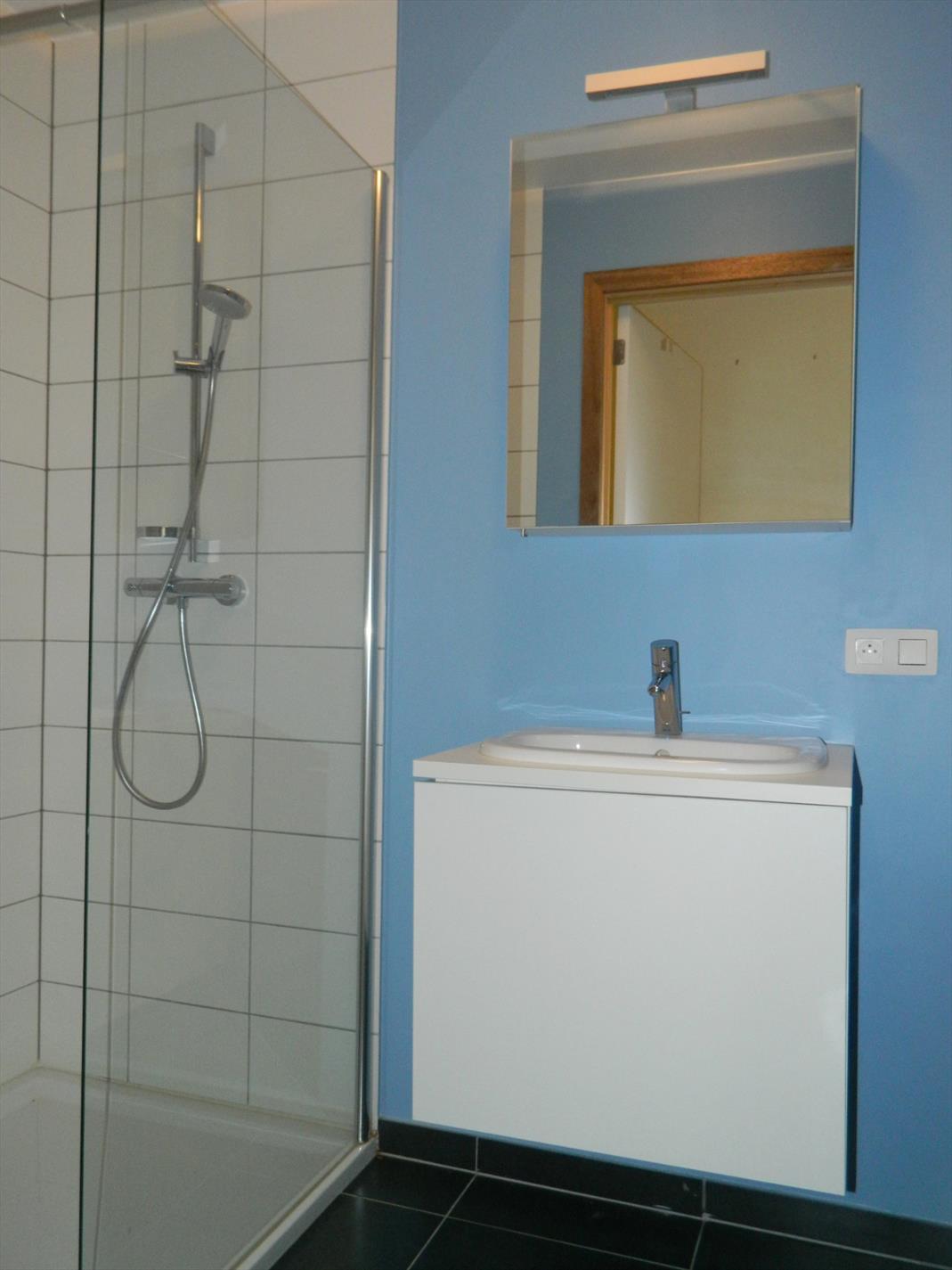 apart toilet, badkamer met ligbad, dubbele lavabo en toilet, tweede badkamer met lavabomeubel en inloopdouche. Ruime slaapkamer van 21 m² en twee kleinere slaapkamers van elk circa 7 m². Autostaanplaats inbegrepen. € 100 maandelijkse lasten met jaarlijkse afrekening. Het gebouw ligt op wandelafstand van de winkelstraat. Vlotte bereikbaarheid via openbaar vervoer (bus en trein).