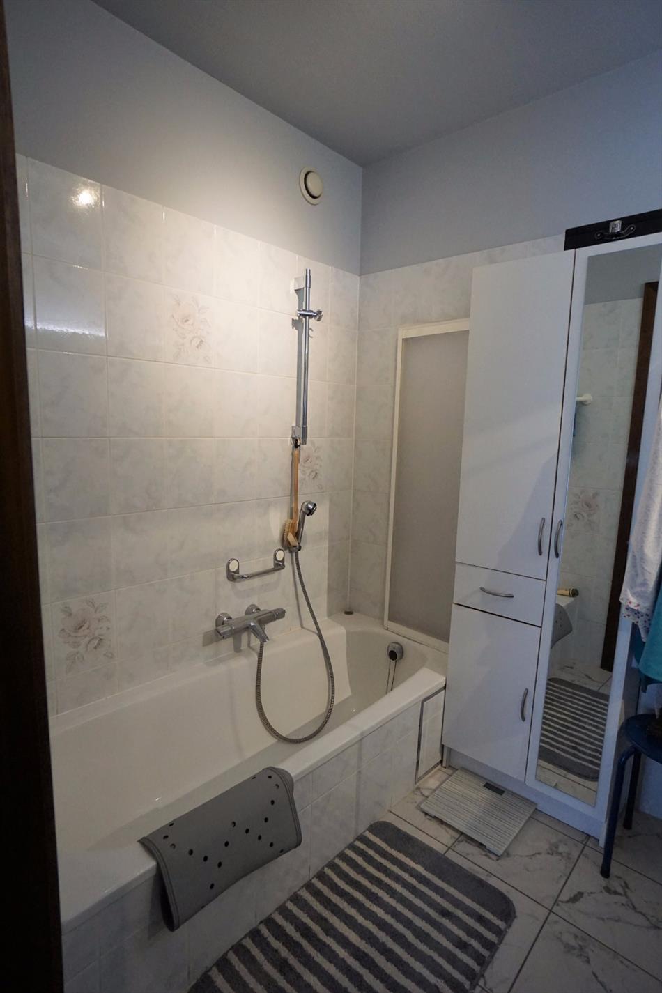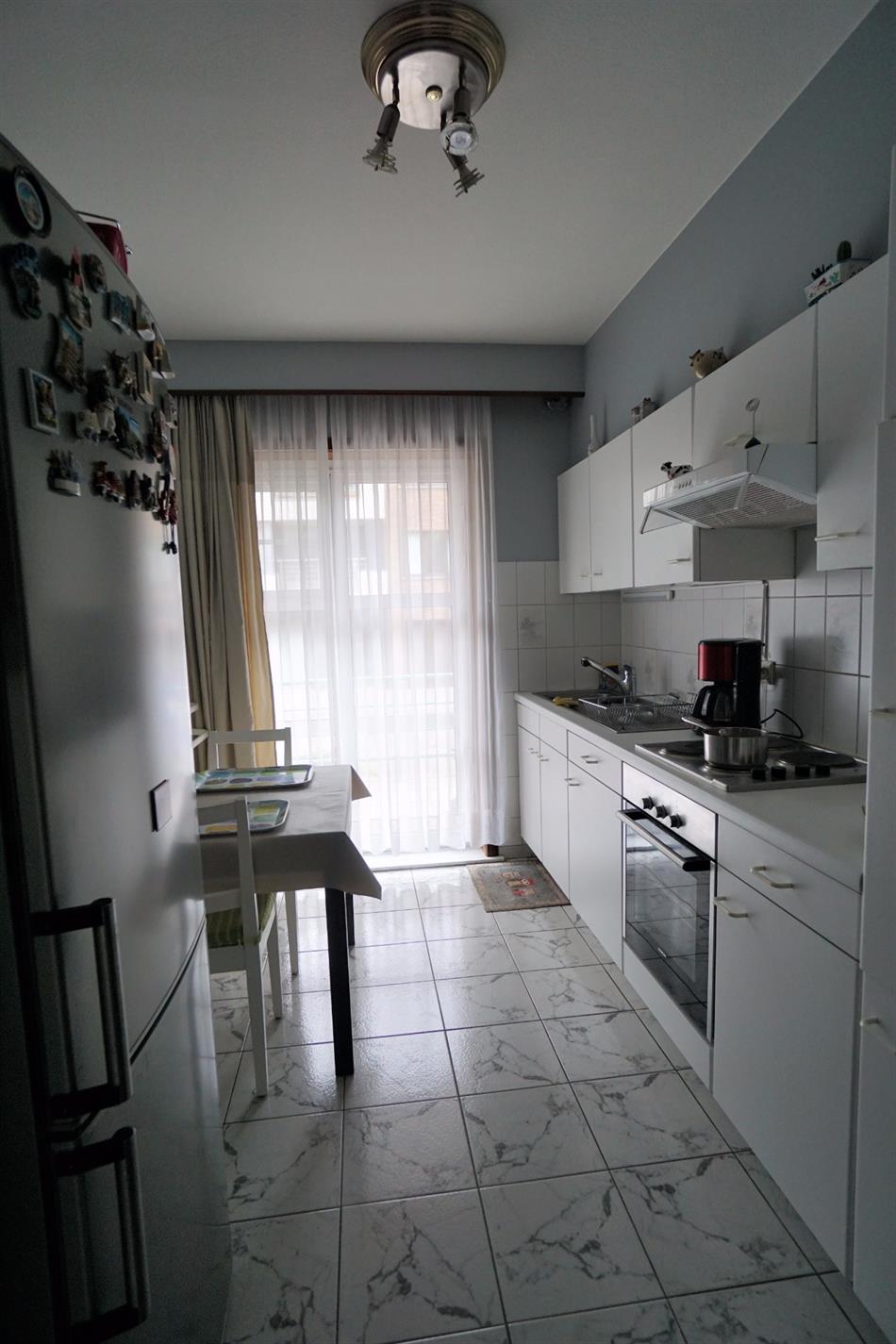 Mooi appartement op de gelijkvloerse verdieping van een rustige residentie in het stadscentrum. Het appartement van 80 m² omvat een woonkamer met terras, een ingerichte keuken, een badkamer, 2 slaapkamers (grote en kleine), een toilet en een berging. Op de kelderverdieping: een garage en een kelder. Gelegen in de nabijheid van de Halse handelaars en openbaar vervoer. Maandelijkse lasten: € 25 water en € 45 gemende delen (jaarlijkse afrekening). Elektriciteit en kabel: contract door huurder. Huisdieren zijn niet toegelaten. Vrij op 1 december 2017.