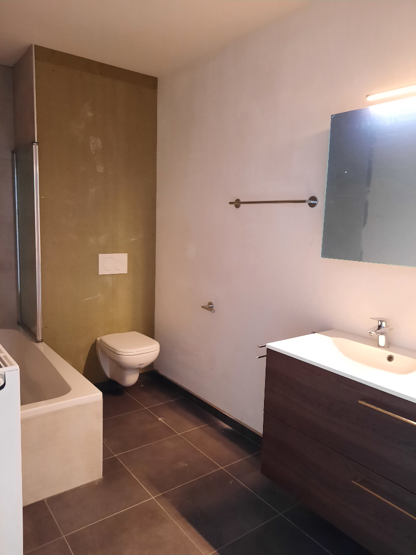 Nieuwbouwappartement op de 1ste verdieping in gebouw met lift. Wordt nog volledig geschilderd. Op wandelafstand van de markt van Lennik met tal van winkels, ook scholen en openbaar vervoer in de korte nabijheid. Indeling: inkom, leefruimte met open keuken, zonnig terras, berging/wasplaats, nachthal met wc, 2 slaapkamers (17,4 m² en 10,2 m²), badkamer met bad/douche, wc en dubbele wastafel. Er is tevens een ondergrondse parkeergarage voorzien en een privékelder. Vrij vanaf 1 oktober 2020. Gemeenschappelijke onkosten: € 60 per maand met jaarlijkse afrekening.