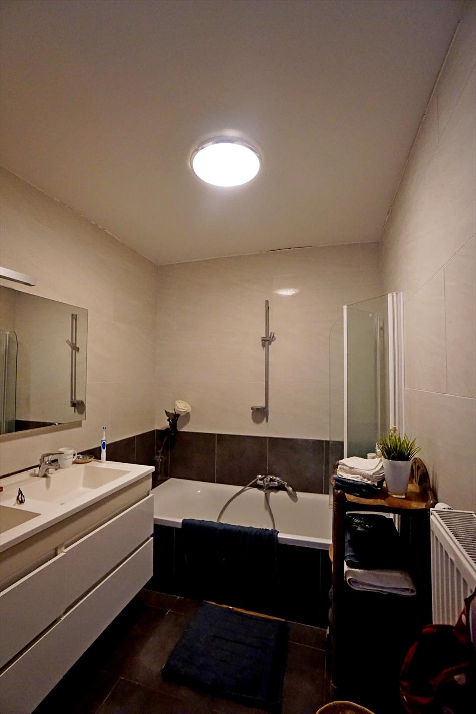 Knap gerenoveerd appartement in een hoeve in het centrum van OLV Lombeek. Het appartement omvat een grote woonkamer (77 m²) met open keuken voorzien van alle toestellen (25 m²), een berging, 2 slaapkamers (23 m² en 16 m²), een toilet en een badkamer met lavabo en bad (8 m²). Dit appartement beschikt verder nog over een terras (15 m²) en een privé staanplaats. Maandelijkse lasten: 50 euro voor onderhoud en verbruik gemene delen en tuin. Beschikbaar vanaf 01/02/2019.