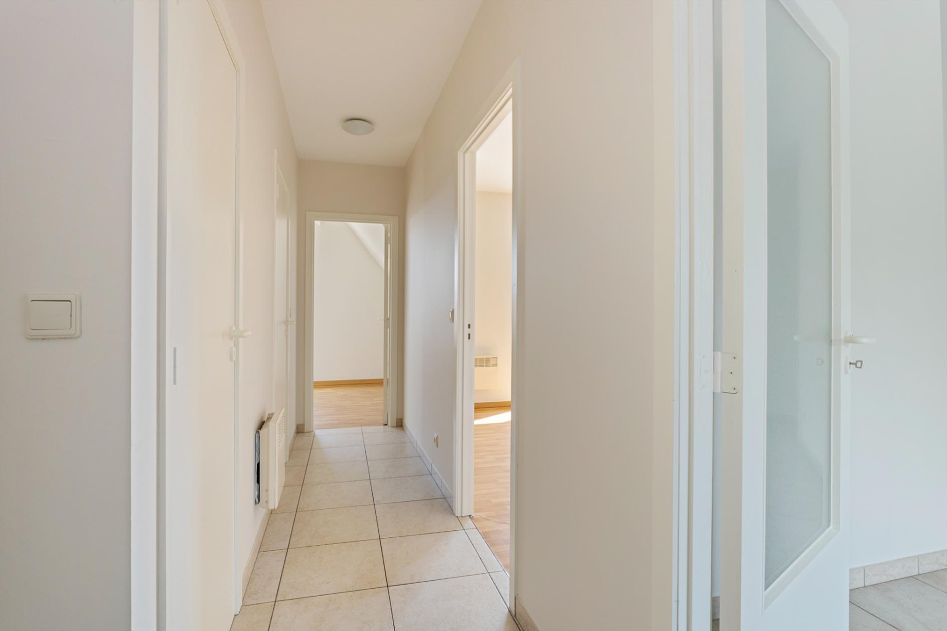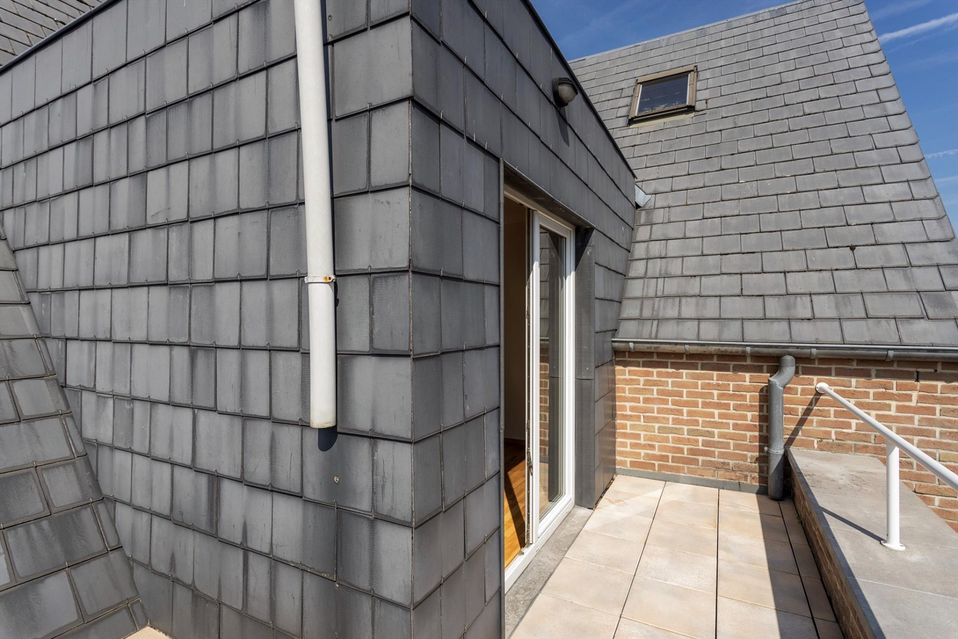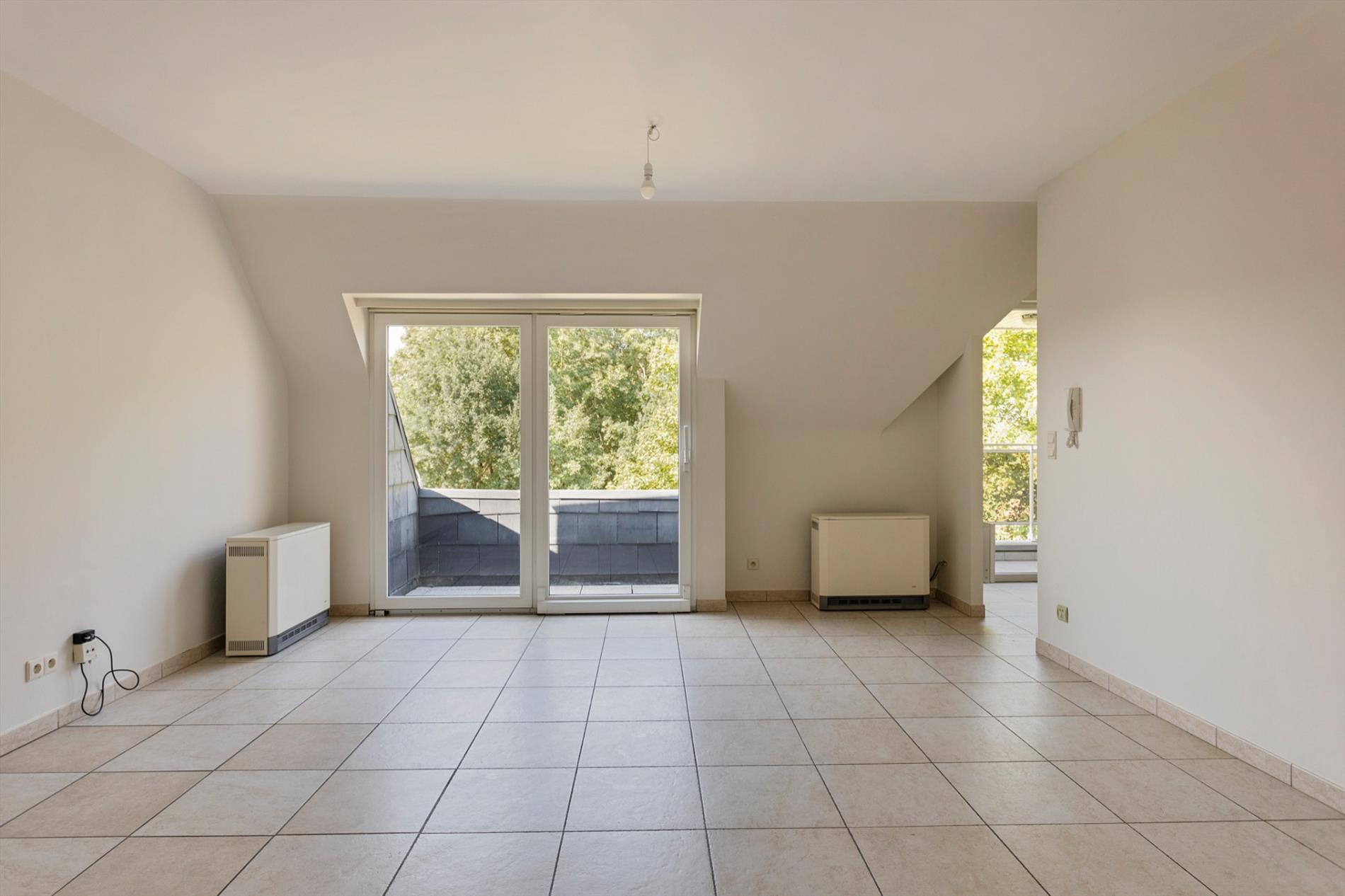 Dit mooie appartement is volledig instapklaar. Indeling: inkomhal, woonkamer (27 m²) met terras, open keuken (7 m²) met terras, nachthal, kuisberging, afzonderlijk toilet, ingerichte badkamer, 2 slaapkamers ( 9 m² en 14 m²) waarvan een met terras; onder het dak bevindt zich een privatieve zolderruimte (18 m²); op de kelderverdieping bevinden zich een autostaanplaats en een kelderruimte. De elektrische installatie is volledig conform. Dit pand is heel goed gelegen: op wandelafstand van het stadscentrum en nabij een rustige en groene omgeving. Het gebouw is voorzien van een lift. De residentie omvat een kleine mede-eigendom met weinig gemeenschappelijke kosten. Dit appartement is zeker een bezoekje waard.