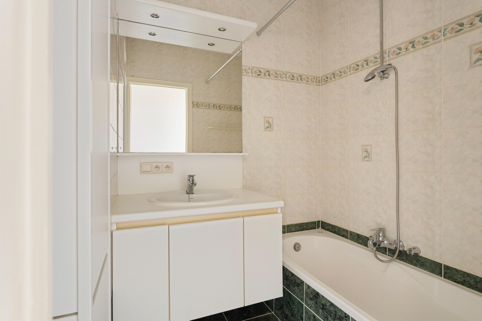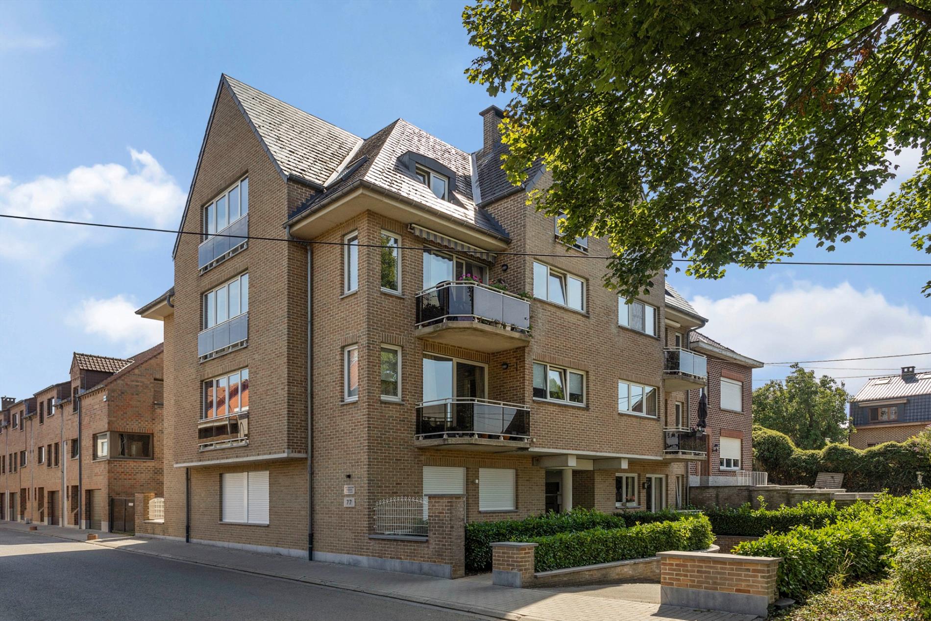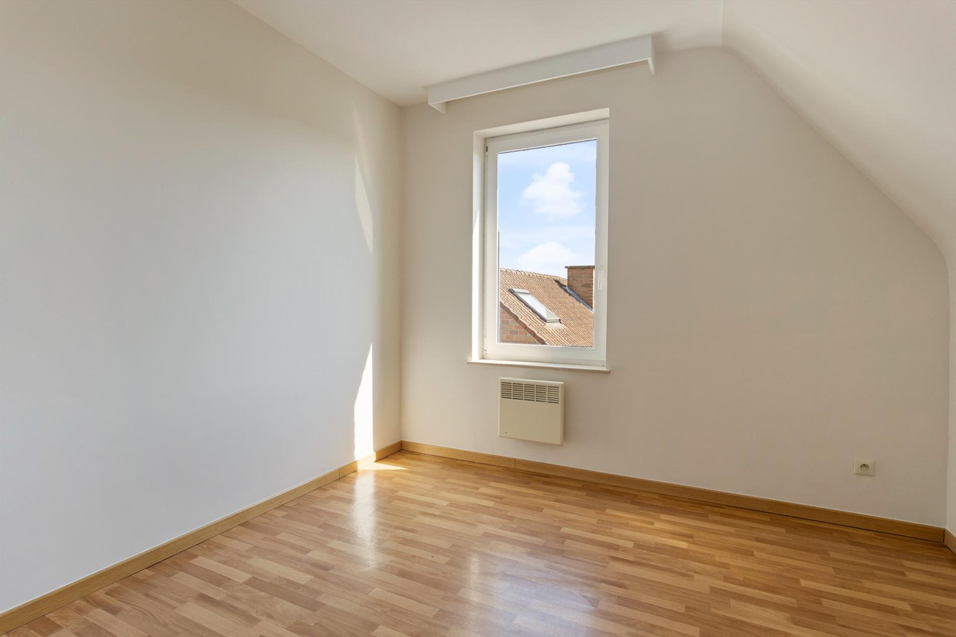 Dit mooie appartement is volledig instapklaar. Indeling: inkomhal, woonkamer (27 m²) met terras, open keuken (7 m²) met terras, nachthal, kuisberging, afzonderlijk toilet, ingerichte badkamer, 2 slaapkamers ( 9 m² en 14 m²) waarvan een met terras; onder het dak bevindt zich een privatieve zolderruimte (18 m²); op de kelderverdieping bevinden zich een autostaanplaats en een kelderruimte. De elektrische installatie is volledig conform. Dit pand is heel goed gelegen: op wandelafstand van het stadscentrum en nabij een rustige en groene omgeving. Het gebouw is voorzien van een lift. De residentie omvat een kleine mede-eigendom met weinig gemeenschappelijke kosten. Dit appartement is zeker een bezoekje waard.