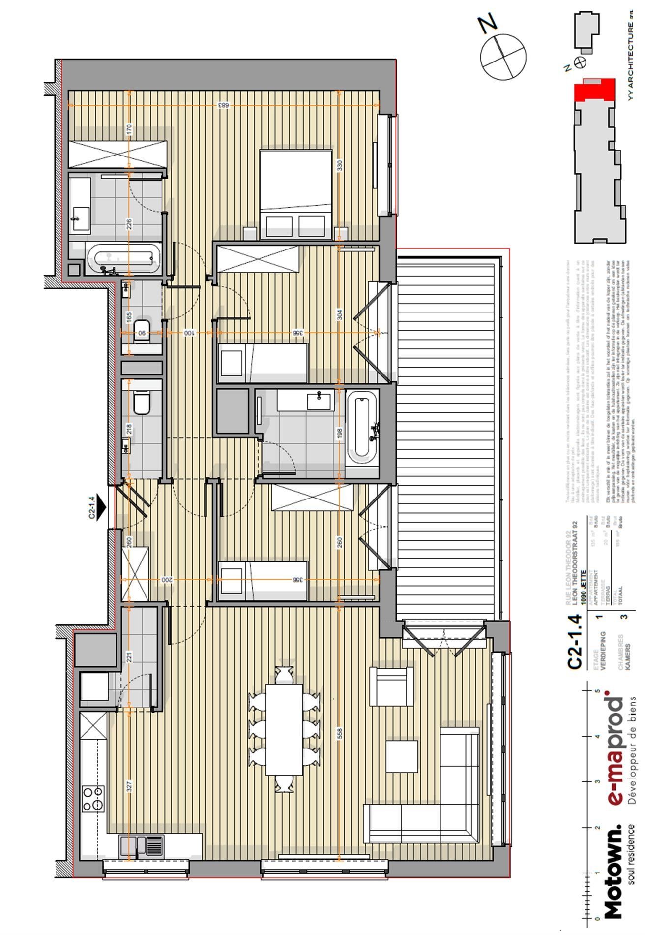 Indeling appartement: inkomhal met toilet, zonnige woonkamer met open keuken, berging/wasplaats, master bedroom met annex douchekamer en dressing, 2 extra slaapkamers, 2e afzonderlijk toilet en een badkamer.