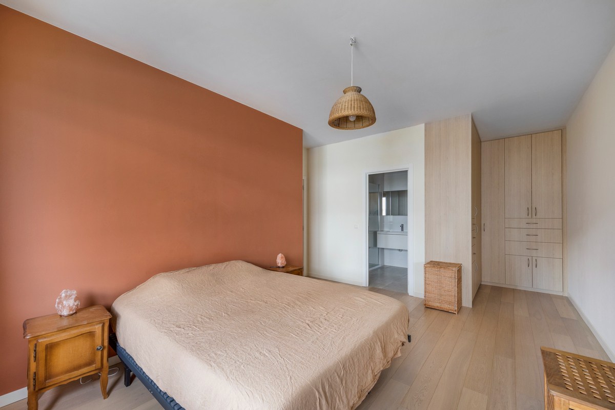 Het appartement is gelegen op de 1ste verdieping (lift aanwezig) en heeft een oppervlakte van 121m². De inrichting is smaakvol met kwalitatieve en duurzame materialen. Bijkomend is er nog een ruim terras van 20m².