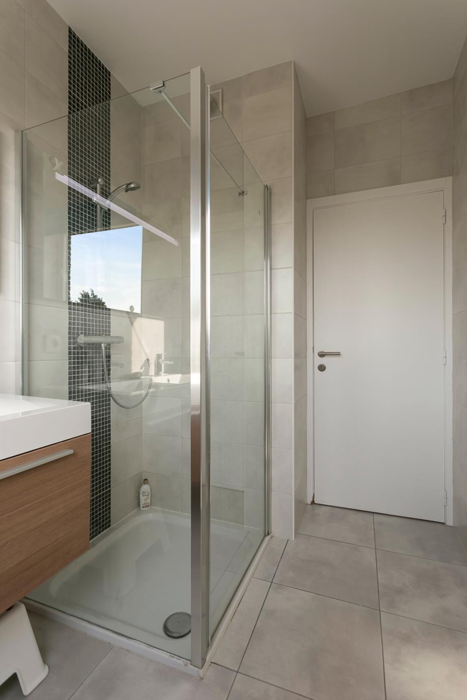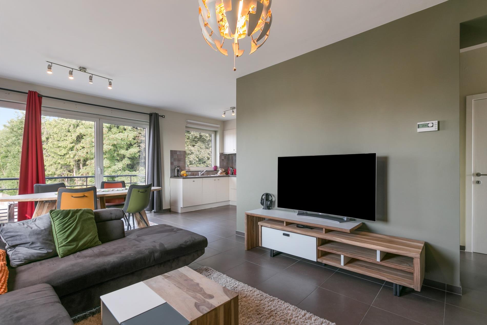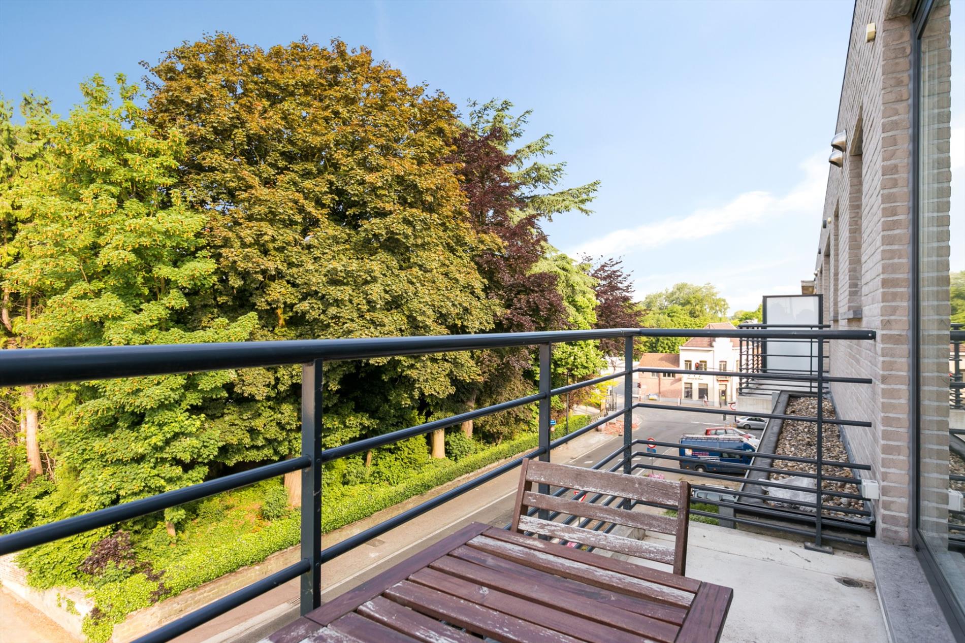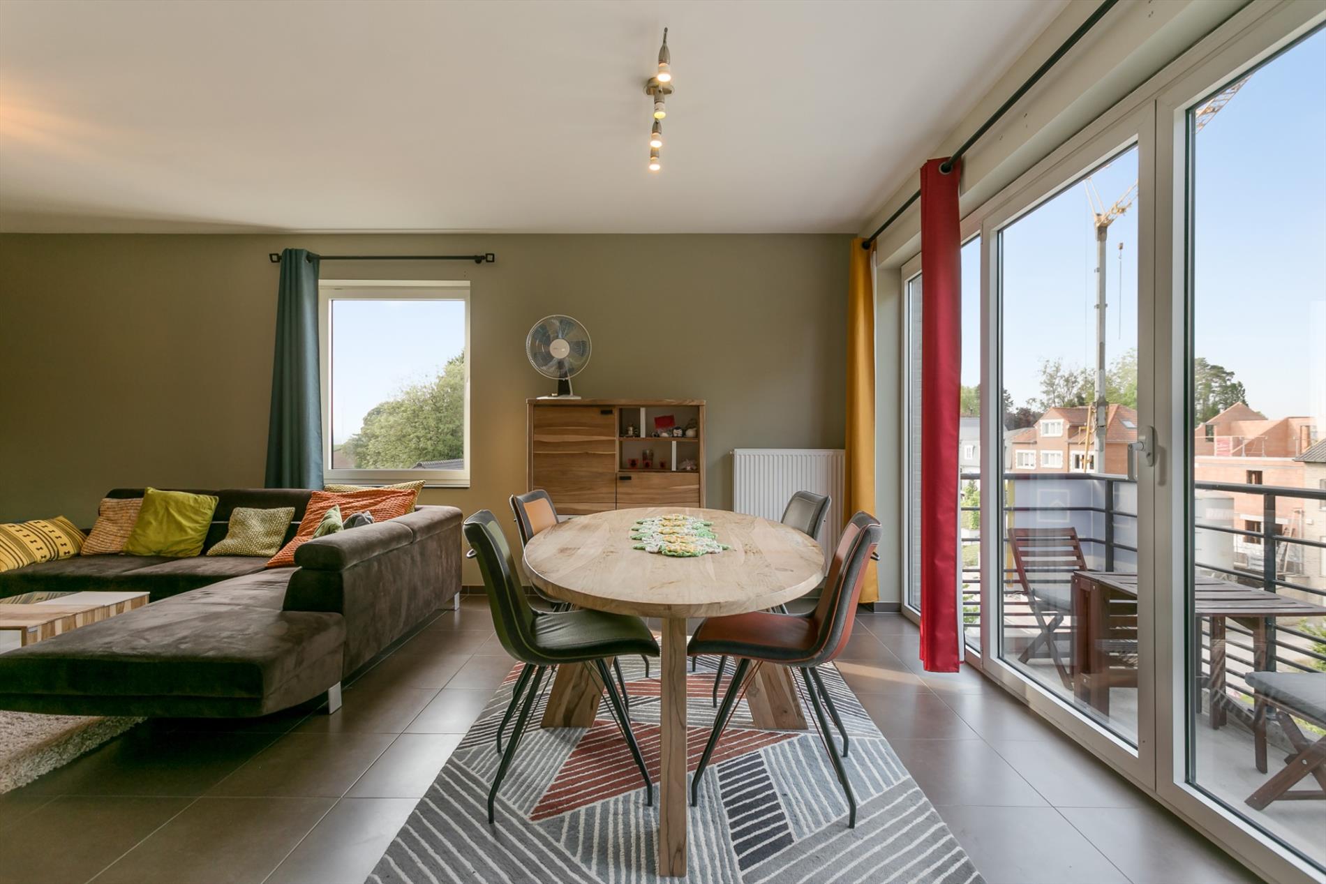 OPTIE Modern appartement gelegen in een recent gebouw (bj. 2013). Het bevindt zich op de rand van het centrum van Sint-Pieters-Leeuw. Winkels, scholen, openbaar vervoer en park Coloma vlakbij. Dit kwalitatief afgewerkt appartement is gelegen op de derde verdieping. Indeling van het appartement: hal, leefruimte (27 m²), open keuken (8 m²),berging (2,8 m²), terras (4 m²), 2 slaapkamers (9 m² en 13,4 m²), badkamer met inloopdouche en lavabomeubel (5,4 m²), toilet. Ook inbegrepen: ruime afgesloten garageplaats in de parkeerkelder met rechtstreekse toegang tot een privatieve kelder (4.7 m²). Extra's: ventilatiesysteem, stofzuigersysteem, versterkte voordeur. Lift aanwezig. Momenteel verhuurd.