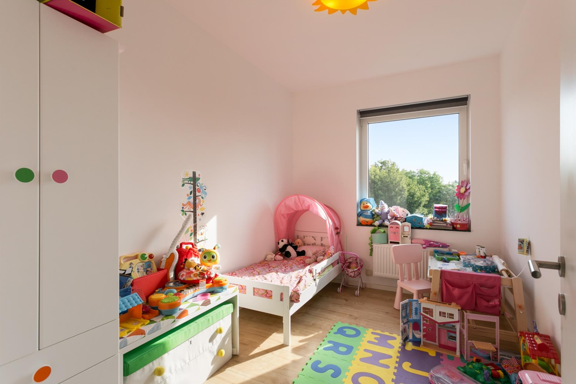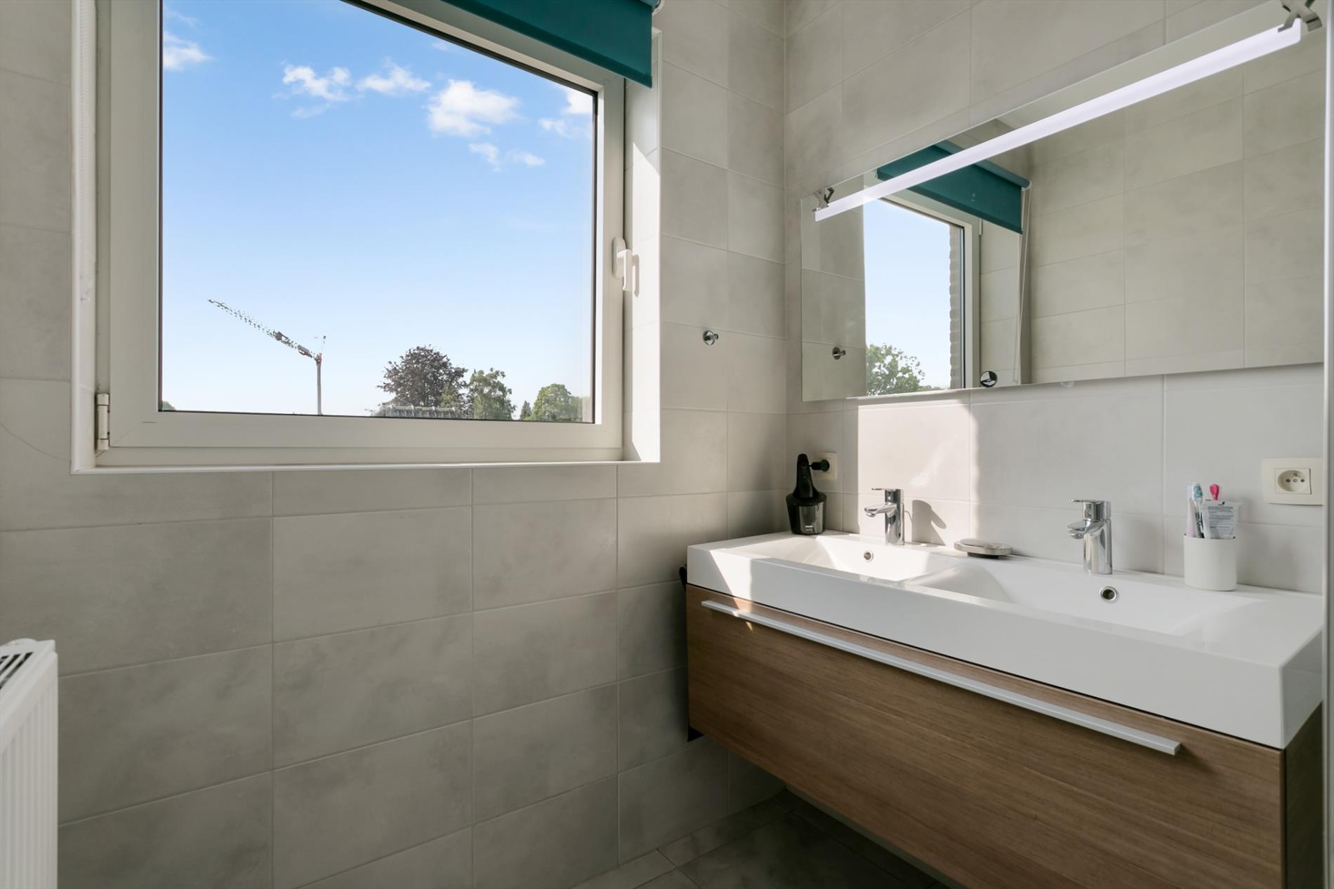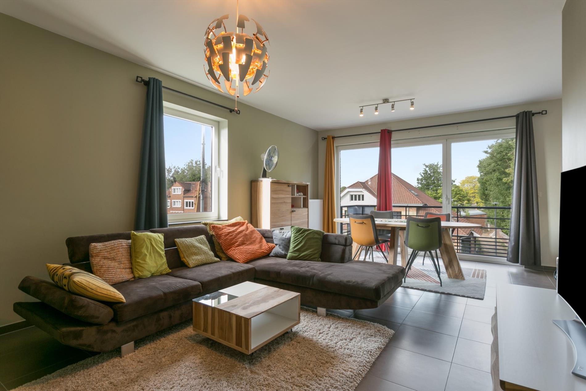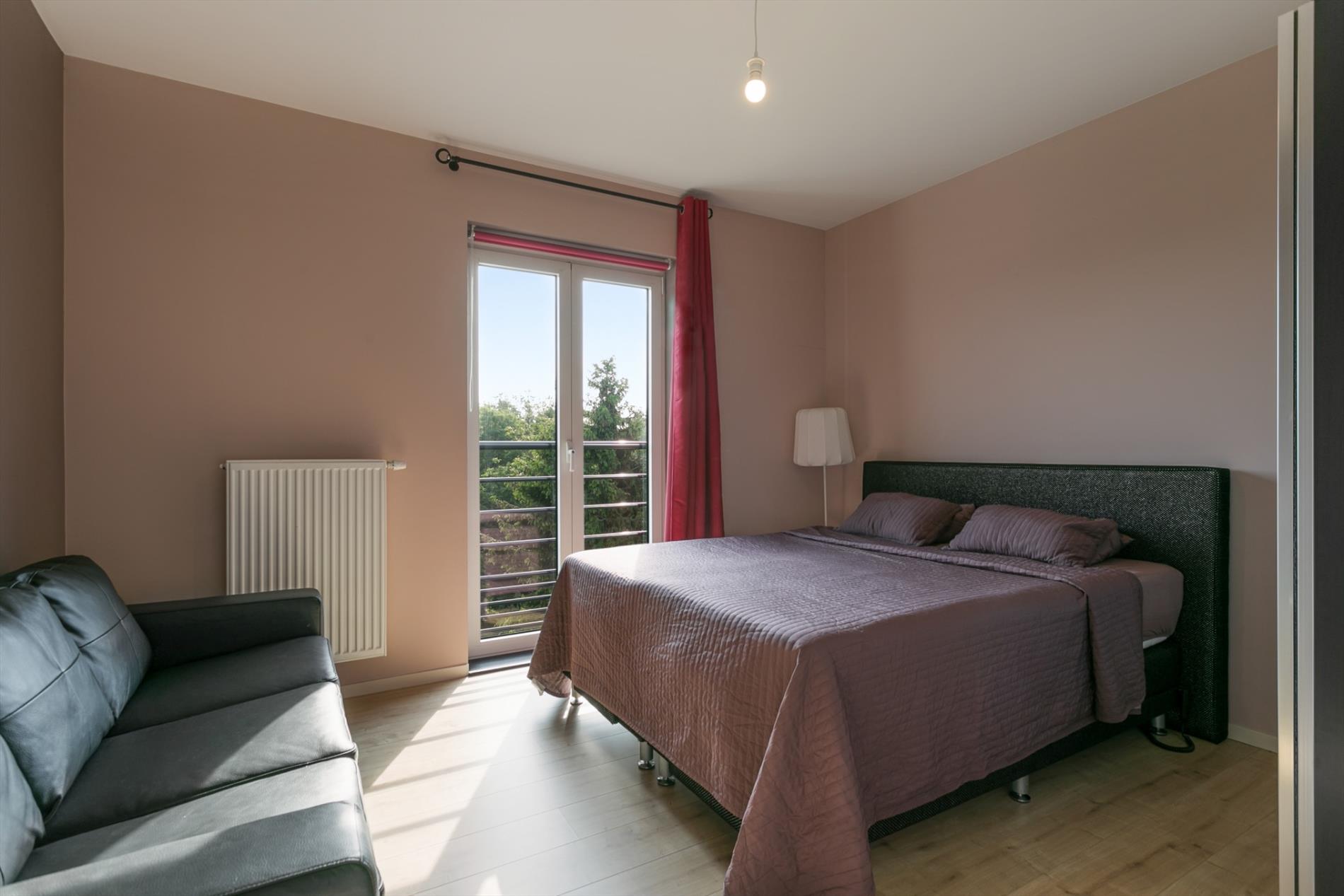 OPTIE Modern appartement gelegen in een recent gebouw (bj. 2013). Het bevindt zich op de rand van het centrum van Sint-Pieters-Leeuw. Winkels, scholen, openbaar vervoer en park Coloma vlakbij. Dit kwalitatief afgewerkt appartement is gelegen op de derde verdieping. Indeling van het appartement: hal, leefruimte (27 m²), open keuken (8 m²),berging (2,8 m²), terras (4 m²), 2 slaapkamers (9 m² en 13,4 m²), badkamer met inloopdouche en lavabomeubel (5,4 m²), toilet. Ook inbegrepen: ruime afgesloten garageplaats in de parkeerkelder met rechtstreekse toegang tot een privatieve kelder (4.7 m²). Extra's: ventilatiesysteem, stofzuigersysteem, versterkte voordeur. Lift aanwezig. Momenteel verhuurd.