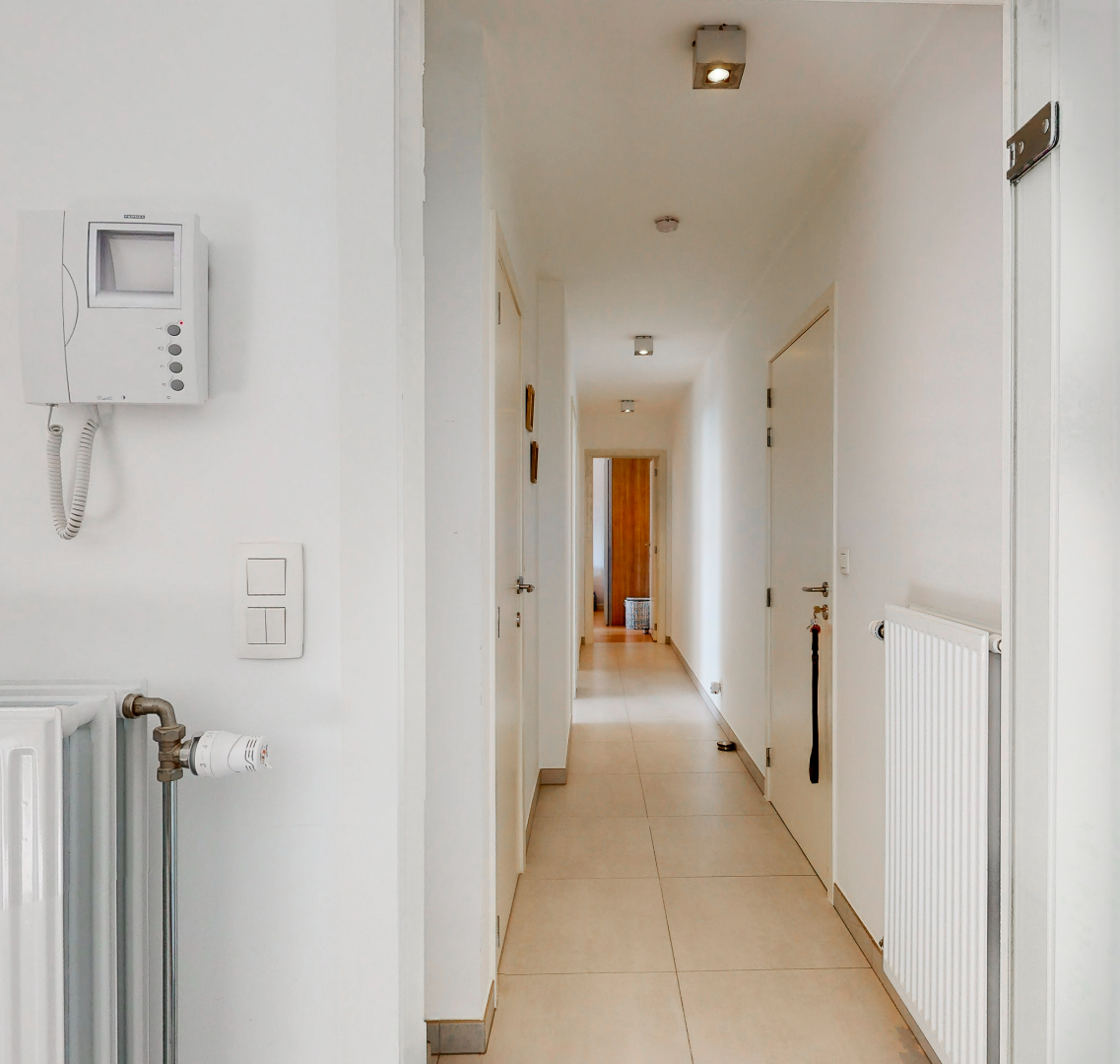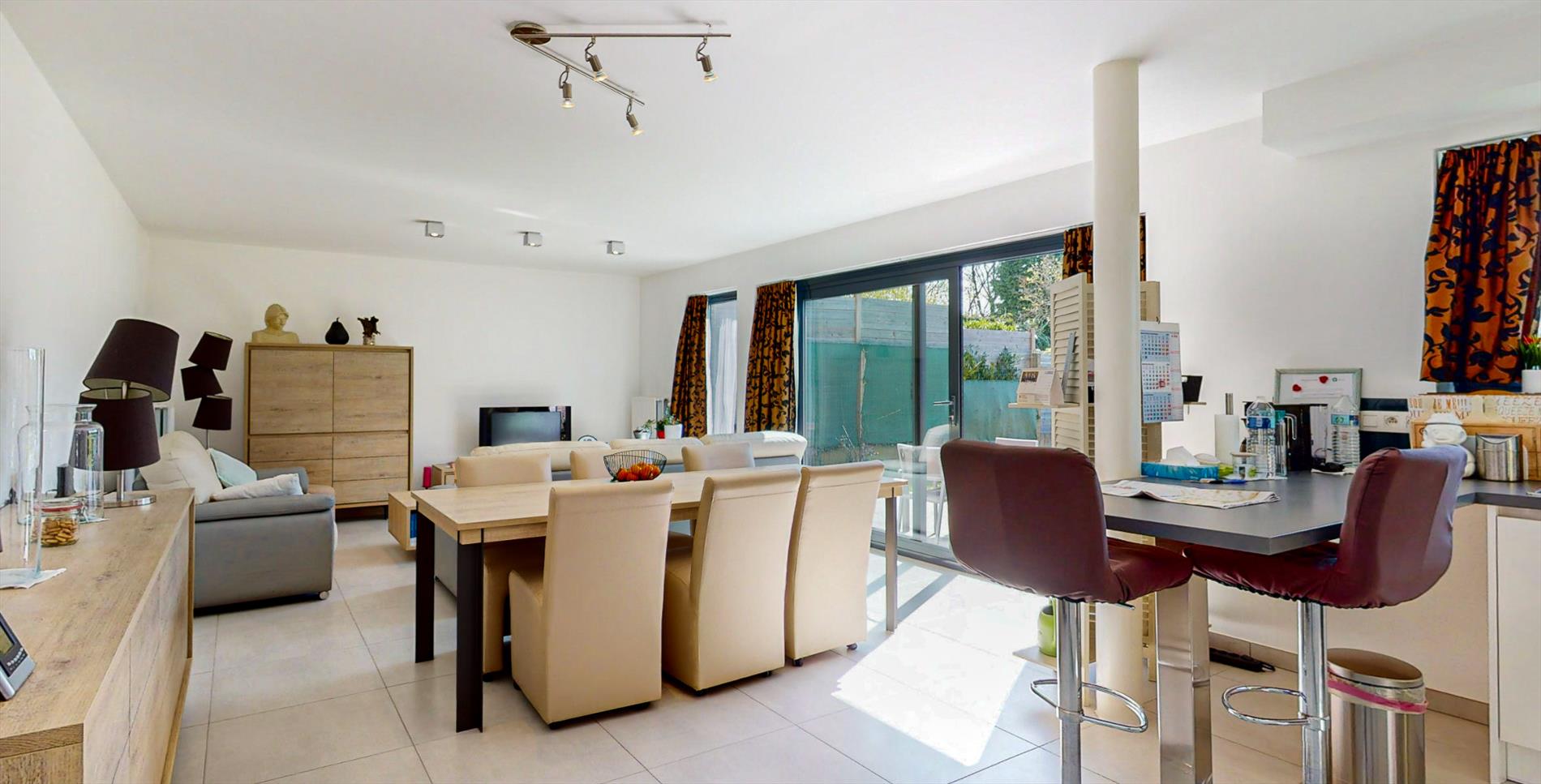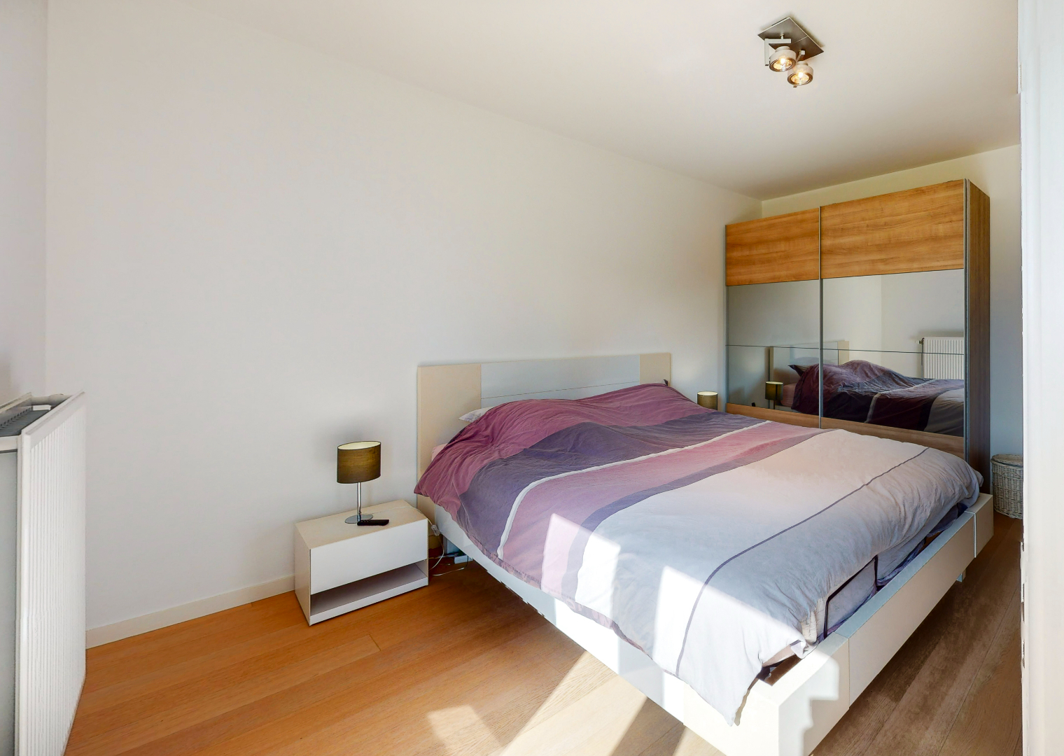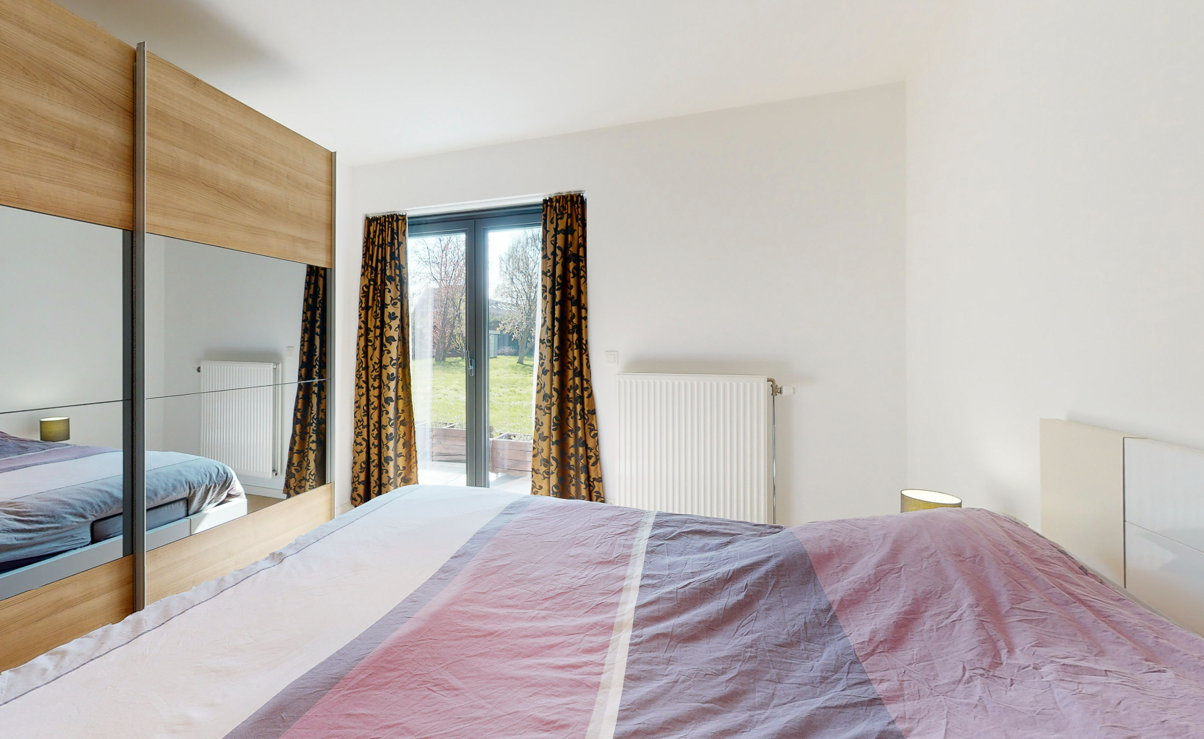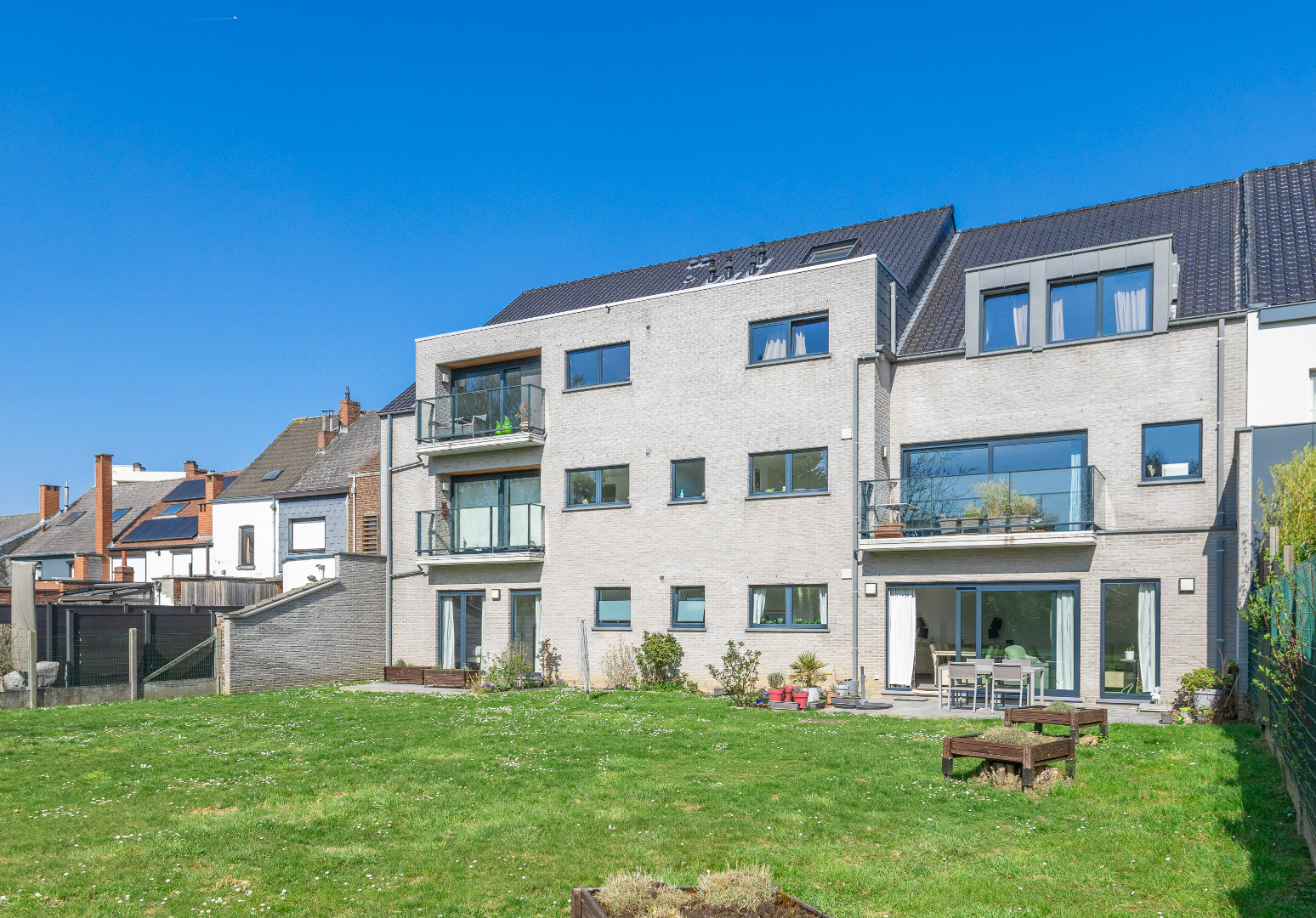 In een klein gebouw met 5 appartementen bevindt zich dit gelijkvloers appartement met volgende indeling: inkomhal, leefruimte, open ingerichte keuken met aansluitende berging, 2 slaapkamers en een badkamer. Verplichte aankoop van garage en staanplaats (25.000€).Het gebouw dateert van 2015. Het gebruik van de tuin is exclusief voor de bewoner van het gelijkvloers. LInk matterport: https://my.matterport.com/show/?m=7M98XLGcRKB