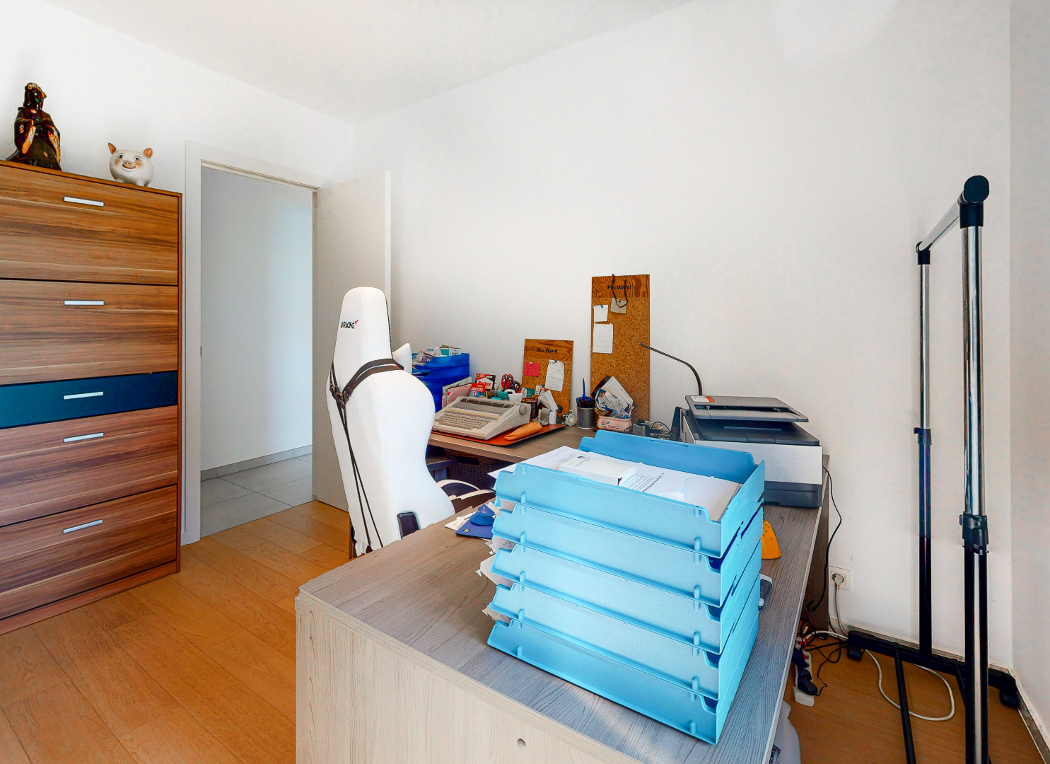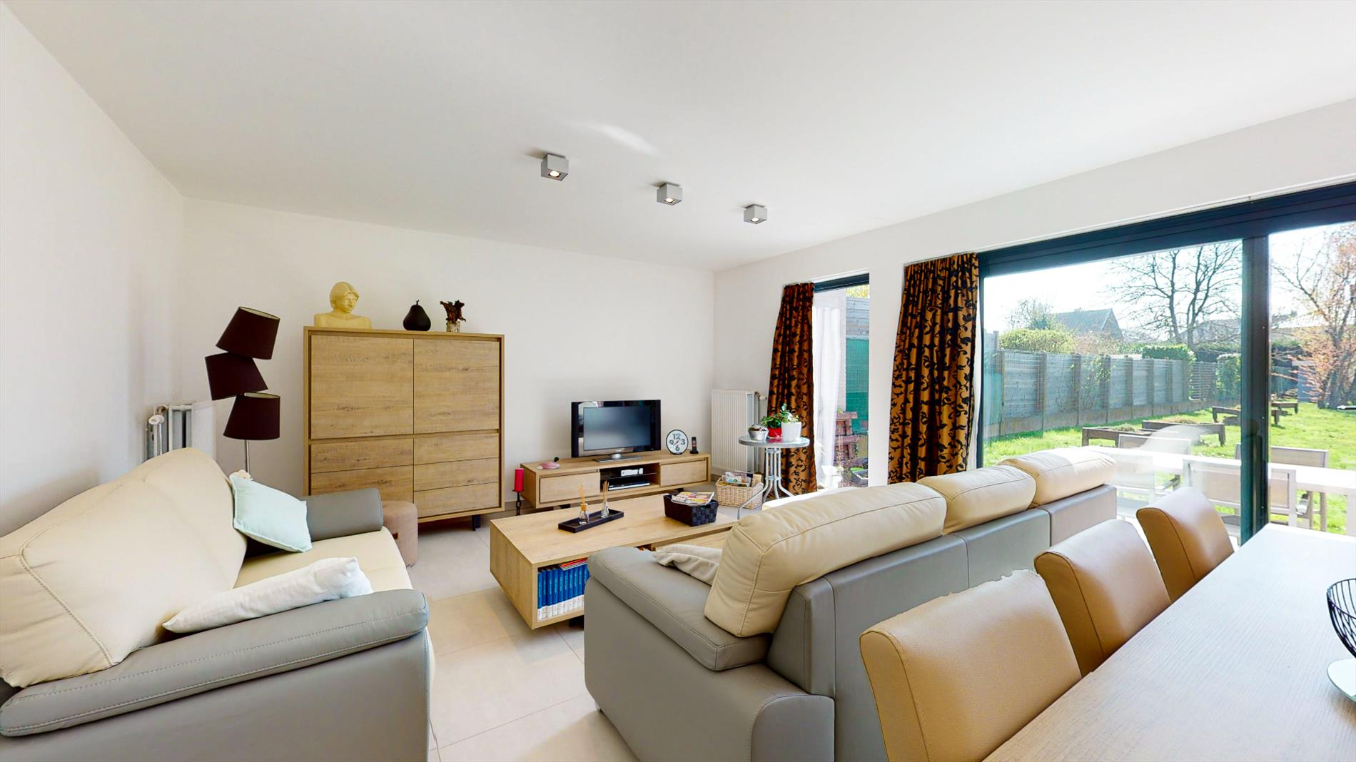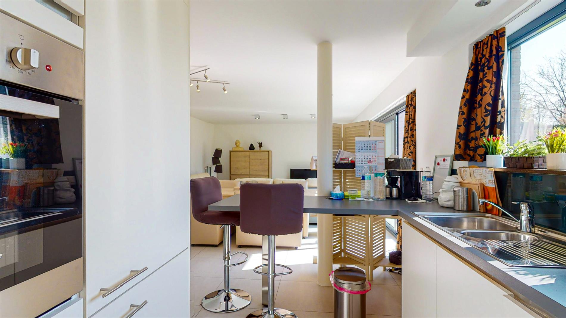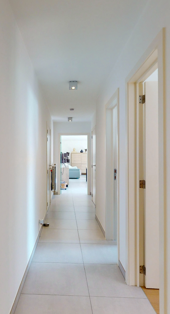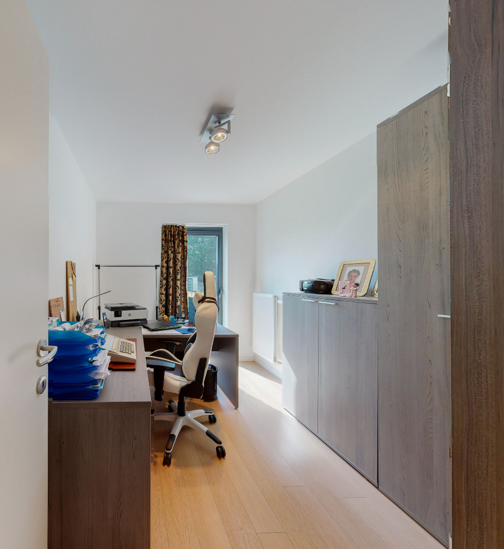 In een klein gebouw met 5 appartementen bevindt zich dit gelijkvloers appartement met volgende indeling: inkomhal, leefruimte, open ingerichte keuken met aansluitende berging, 2 slaapkamers en een badkamer. Verplichte aankoop van garage en staanplaats (25.000€).Het gebouw dateert van 2015. Het gebruik van de tuin is exclusief voor de bewoner van het gelijkvloers. LInk matterport: https://my.matterport.com/show/?m=7M98XLGcRKB