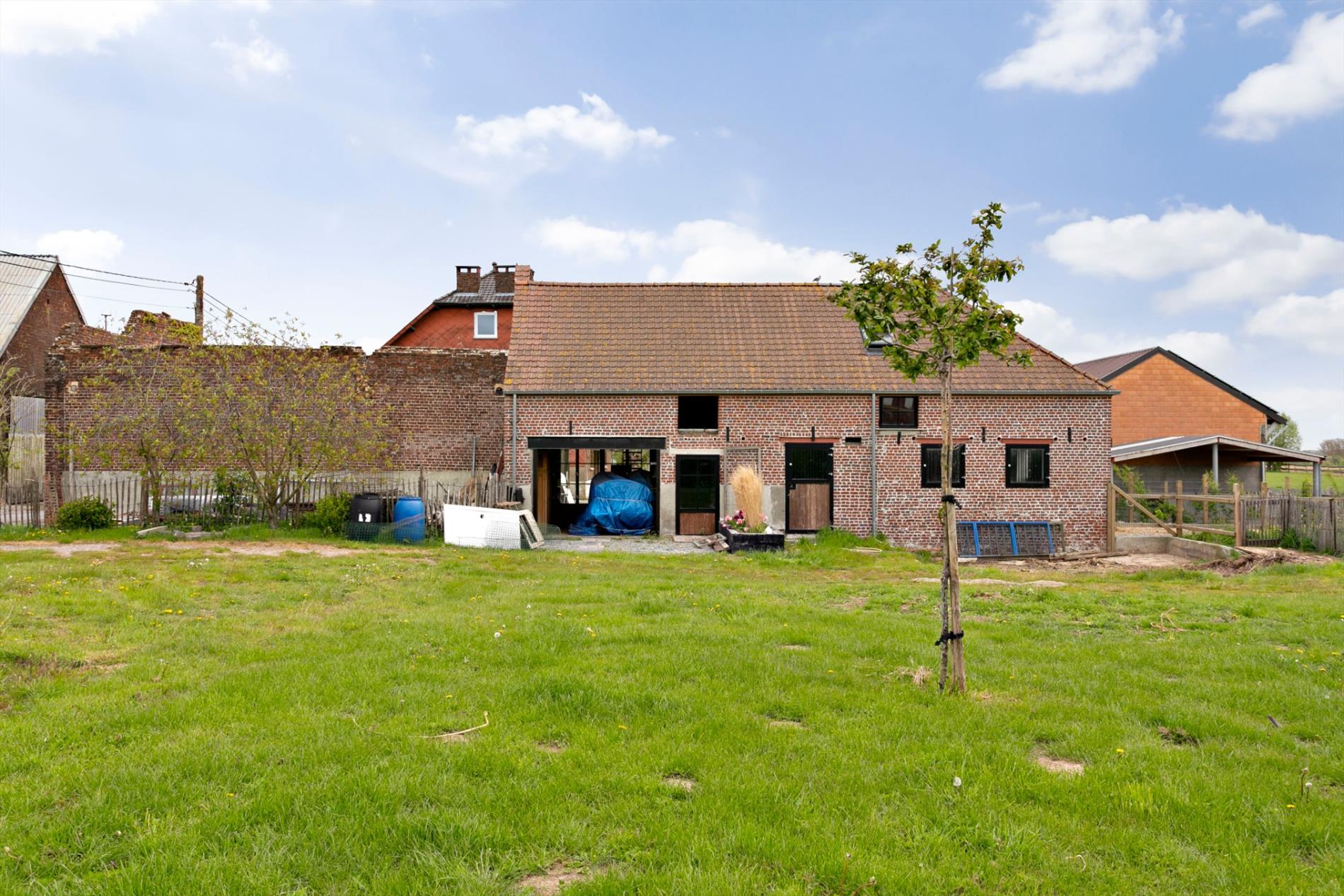 Uitzonderlijk gelegen hoeve met tal van bijgebouwen op 1ha50. Deze hoeve biedt tal van mogelijkheden: vakantiewoning, B&B, kinderboerderij, paardenpension, manège, voor mensen die graag in en met de natuur leven. De eigendom omvat het woonhuis ( 300m²) met grote living met haard, grote ingerichte woonkeuken. Op de eerste verdieping, 3 grote slaapkamers telkens met lavabo, 1 grote kamer met dressing, ruime badkamer met toilet, bad en douche. Op de tweede verdieping, 2 grote slaapkamers met veel lichtinval met eigen douche en toilet, 1 kleine kamer. De bijgebouwen(600m²) (vernieuwde daken) omvatten een studio met mezzanine, kitchenette en douchekamer. Paardenboxen, tal van andere stallingen, atelier, hooizolder, schuur. Volledig afgepaalde weilanden, moestuin. Het woonhuis wordt verwarmd met pelletkachels en radiatoren op pellets, zonneboiler van 800l, 51 zonnepanelen, waterput van 145m diep met hoog debiet, branddeuren en ramen met 3 dubbel glas. Mogelijkheid om 1ha landbouwgrond met watervoorziening bij te kopen.