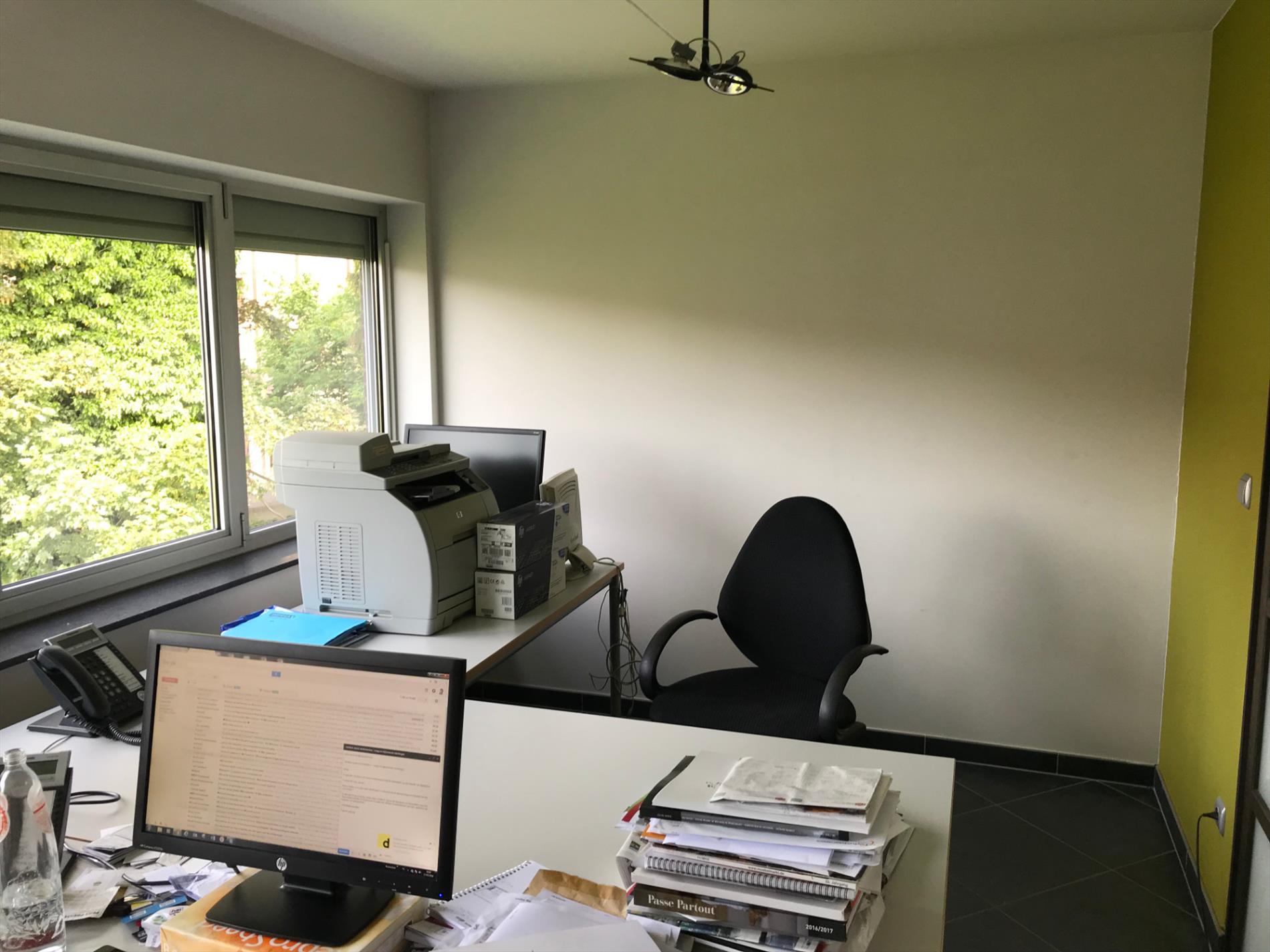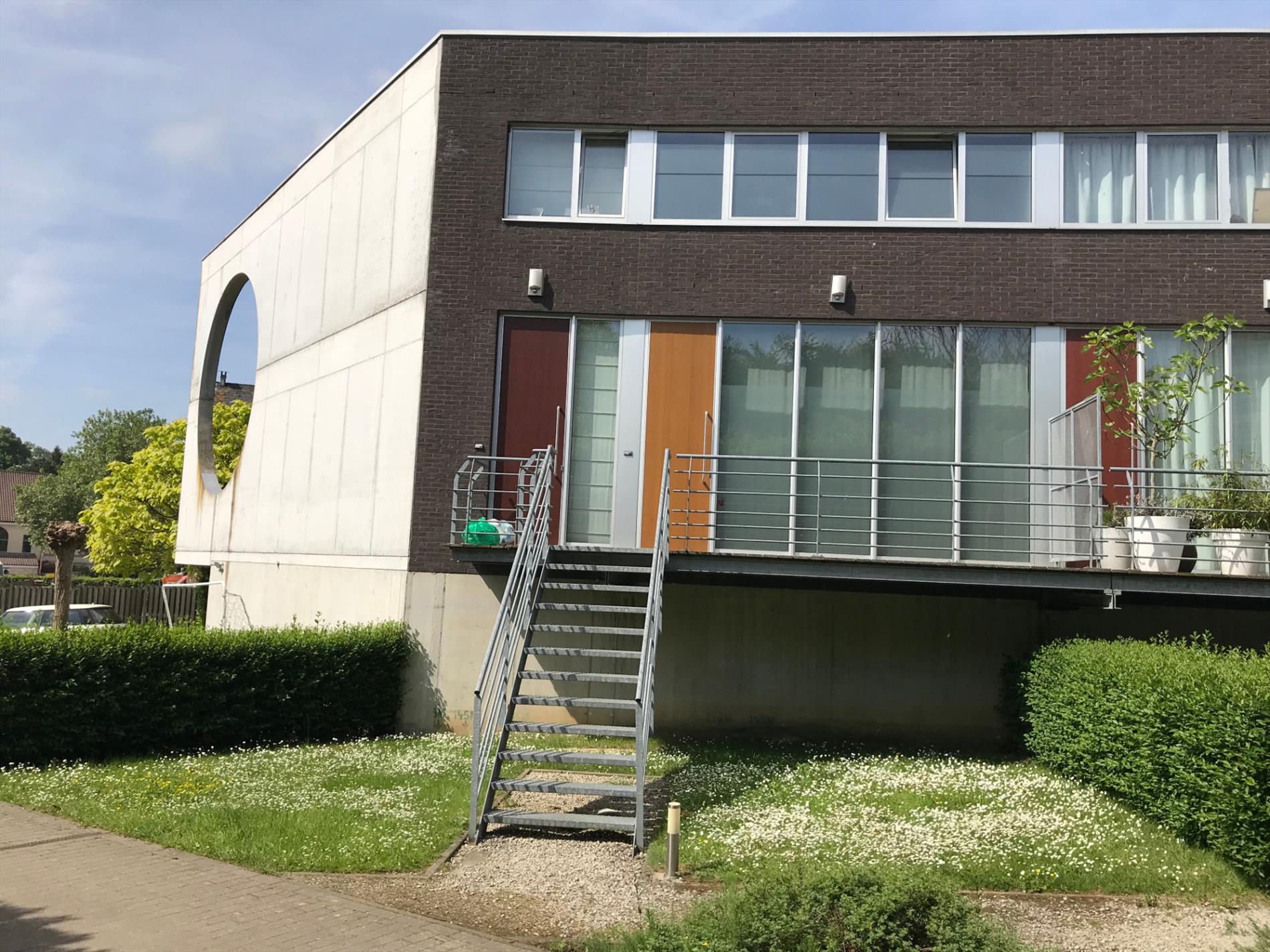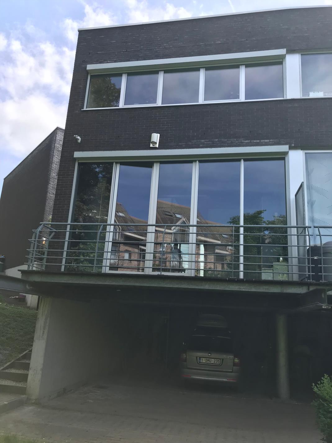 Gebruik van natuurlijke materialen, beton voor garage en kelderniveau, zwarte mangaanbaksteen en glas voor de gevel, zwarte mozaïekvloer in alle plaatsen, metalen binnentrap, hoge plafonds ( 3m), grote hoge ramen, grote geïnstalleerde keuken en bergruimte. Zongerichte living en terras; vloerverwarming met condensatieketel op gas.