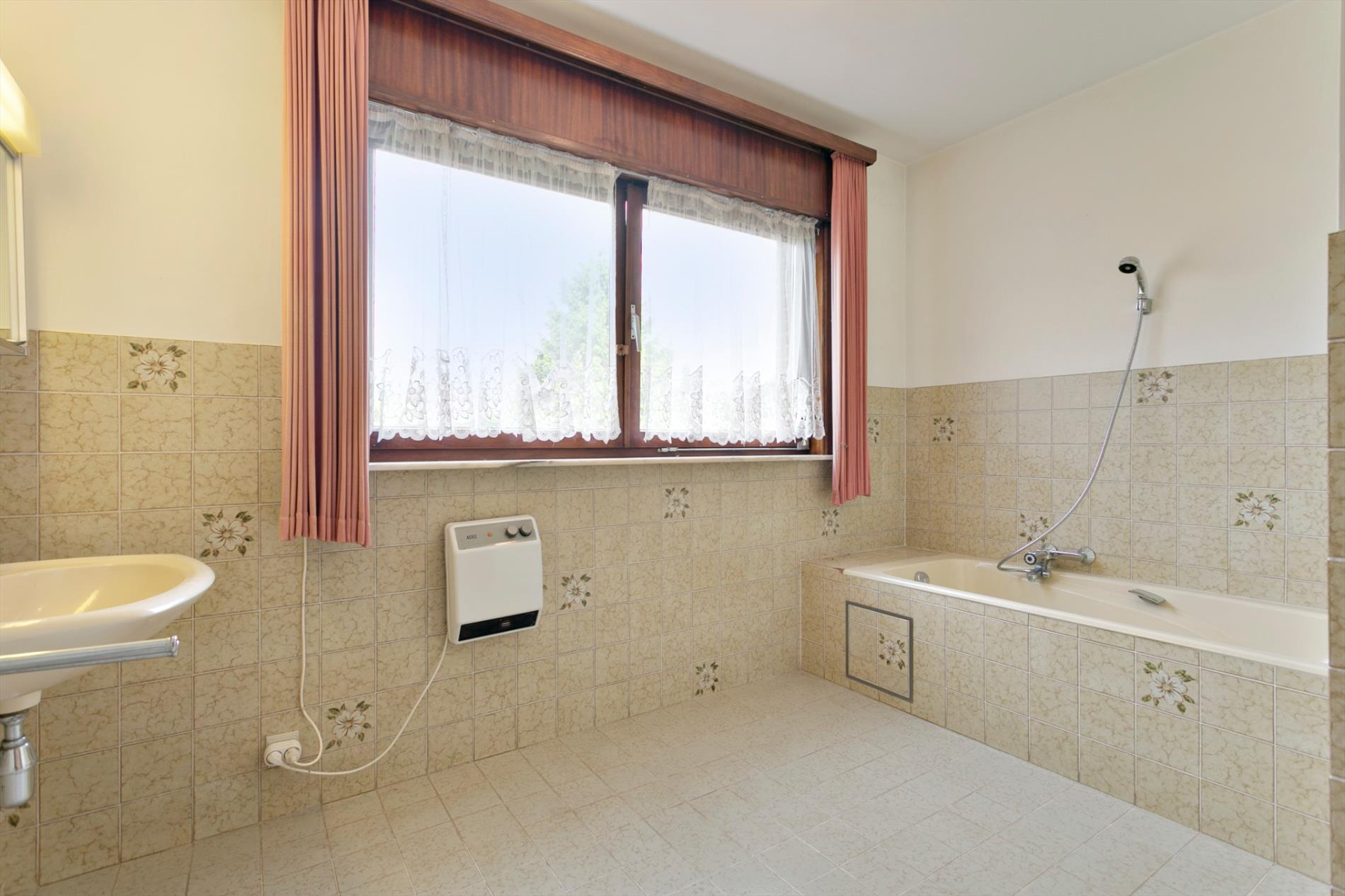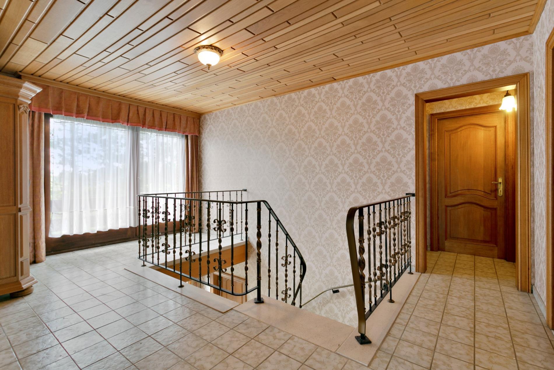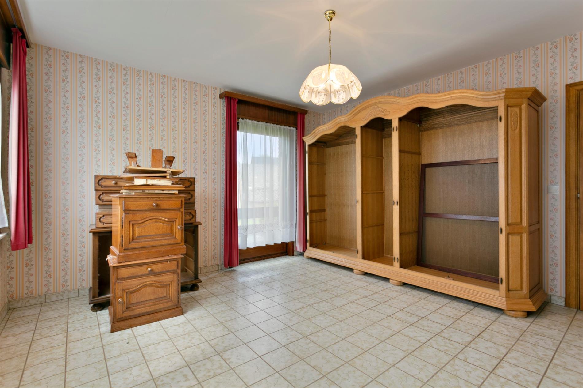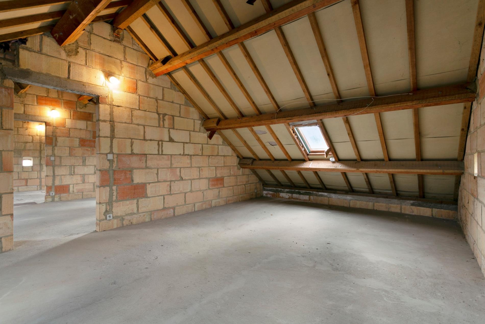Op te frissen, ruime woning. Dubbele garage. Ruime living, keuken, 4 slaapkamers 16,16,12 en 12m², badkamer. Volledig in te richten zolder van 80m². Tuin rondom.