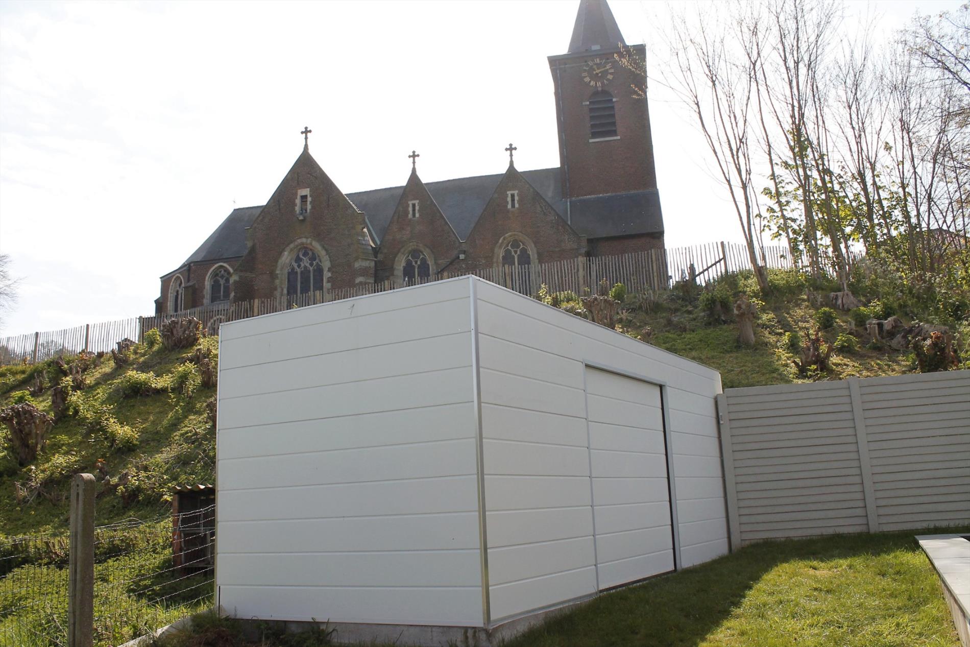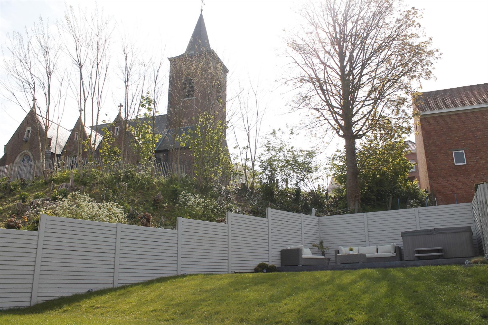Moderne villa, tot in de puntjes afgewerkt en voorzien van alle comfort. Prachtig uitzicht op de kerk van Pollare. Indeling: op het gelijkvloers bevinden zich de inkomhal, bureauruimte (16 m²), wasplaats (11,5 m²) en garage (54 m²) met automatische poort; op de eerste verdieping bevinden zich de woonkamer (43 m²) met open, volledig ingerichte luxe keuken (16 m²), apart toilet en uitgeruste badkamer (12,5 m²); op het tweede verdiep zijn er 3 slaapkamers (17,5 m², 14 m² en 13 m²), een dressing (5,5 m²) en een apart toilet; zolder met uitschuifbare trap (22 m²). Volledig omheinde tuin, zonneterras en tuinhuis. Alarmsysteem en zonnepanelen. Gunstig EPC.