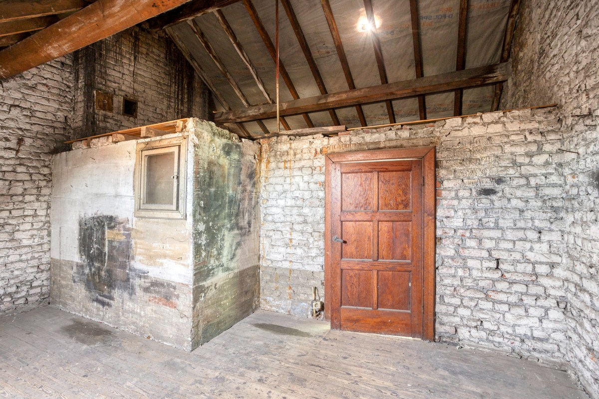 Indeling: gelijkvloers: woonkamer, vernieuwde keuken, berging, vernieuwde badkamer, veranda, binnenkoer met tuinhuis; verdieping: slaapkamer en badkamer/berging; dakverdieping: slaapkamer en nog een in te richten zolderkamer. Prive-parkeerplaats voor de woning.
