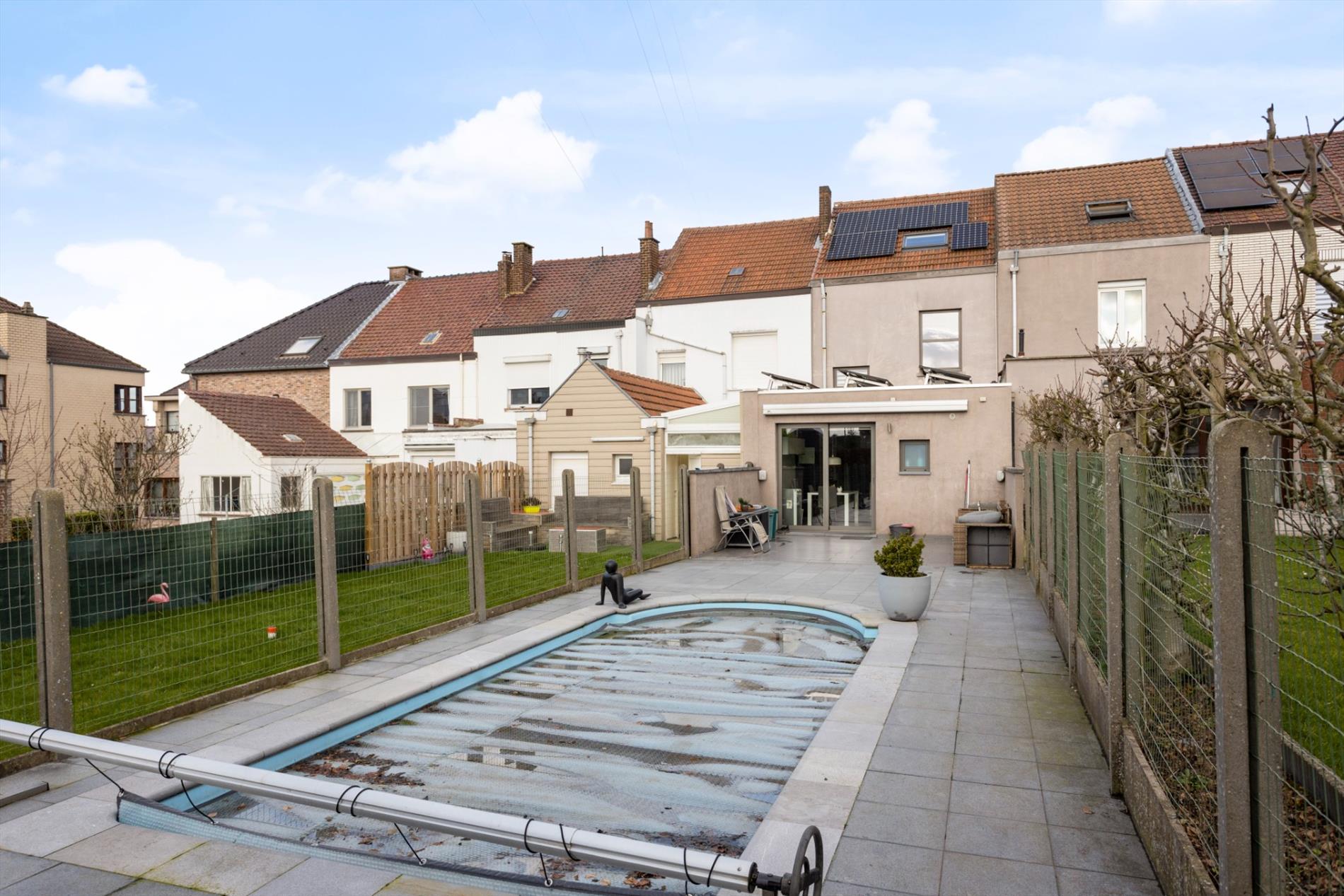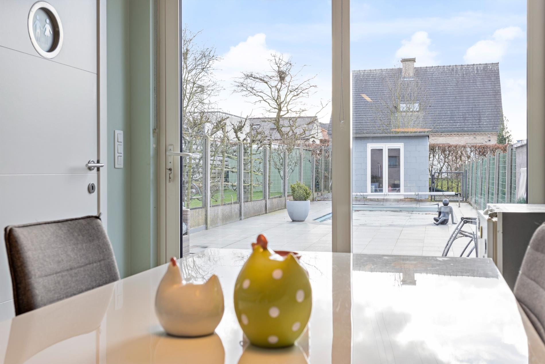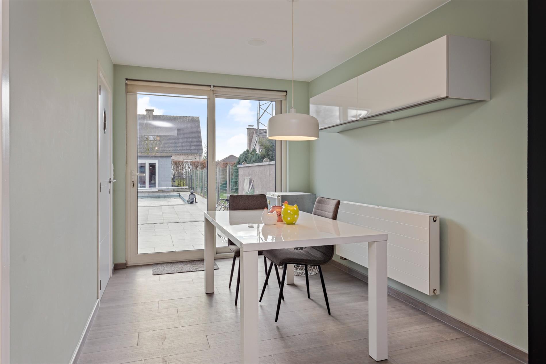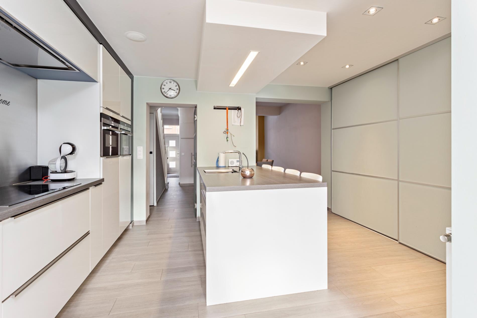 Ruime en goed gelegen woning op grond van 205 m² te koop. Dit pand werd in 2014 volledig gerenoveerd. Indeling: kelderverdieping: ruime kelder (25 m²); gelijkvloers: inkomhal met open, grote en klare woonkamer en aansluitend een moderne leefkeuken voorzien van alle toestellen, afzonderlijk toilet, badkamer met inloopdouche, ligbad en dubbele wastafel; eerste verdieping: nachthal en 2 slaapkamers (20 m² en 12 m²); dakverdieping: ruime slaapkamer (25 m²). Achter de woning bevindt er zich een mooi aangelegd terras, voorzien van een zwembad. Dit zwembad wordt verwarmd via een warmtepomp. Het dak werd gerenoveerd en is voorzien van 30 m² aan zonnepanelen. De centrale verwarming gebeurt via een condensatieketel op aardgas. Alle faciliteiten zijn in de onmiddellijke omgeving terug te vinden. Parkeren lukt steeds vlot in de straat.