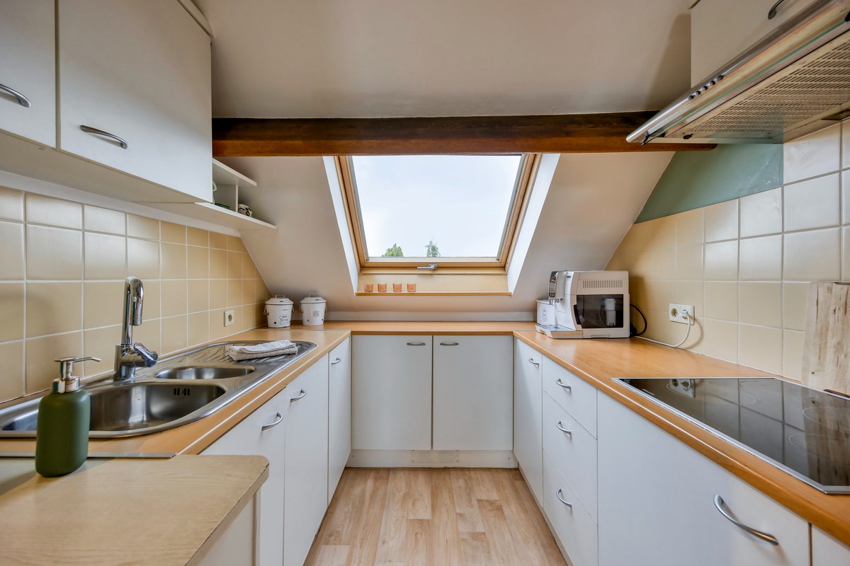 Indeling: kelderverdieping: voorraadkelder; gelijkvloers: inkomhal (momenteel ingericht als kantoorruimte), keuken, bergruimte, aanbouw met extra bergruimte en toilet; eerste verdieping: 3 slaapkamers, badkamer, toilet; tweede verdieping: woonruimte met keuken.