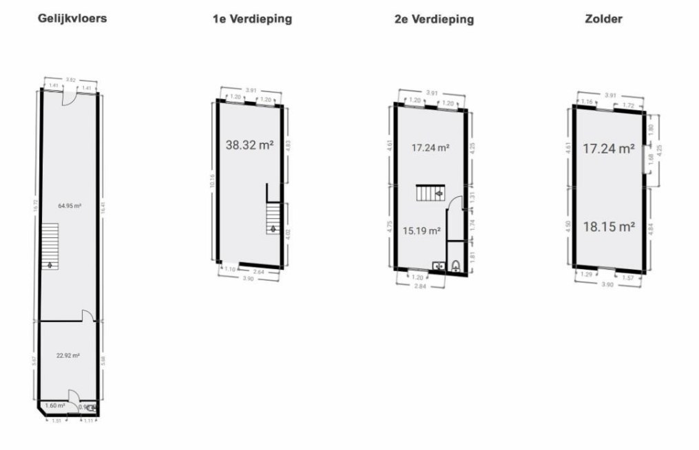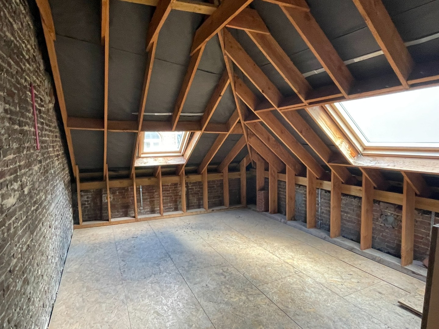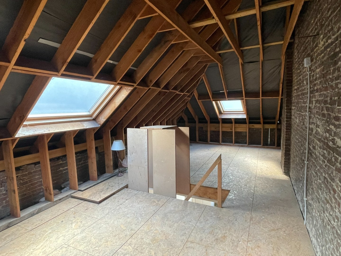 Indeling gelijkvloers: open ruimte met achteraan sanitair gedeelte. Eerste verdieping: circa 35m² met vide. Tweede verdieping: 2 ruimtes met toiletaansluiting, circa 35m². Mogelijkheid voor 4 slaapkamers. Dakverdieping: circa 35m². Dakstructuur en onderdak vernieuwd. PVC dubbele beglazing en verwarming op gas.