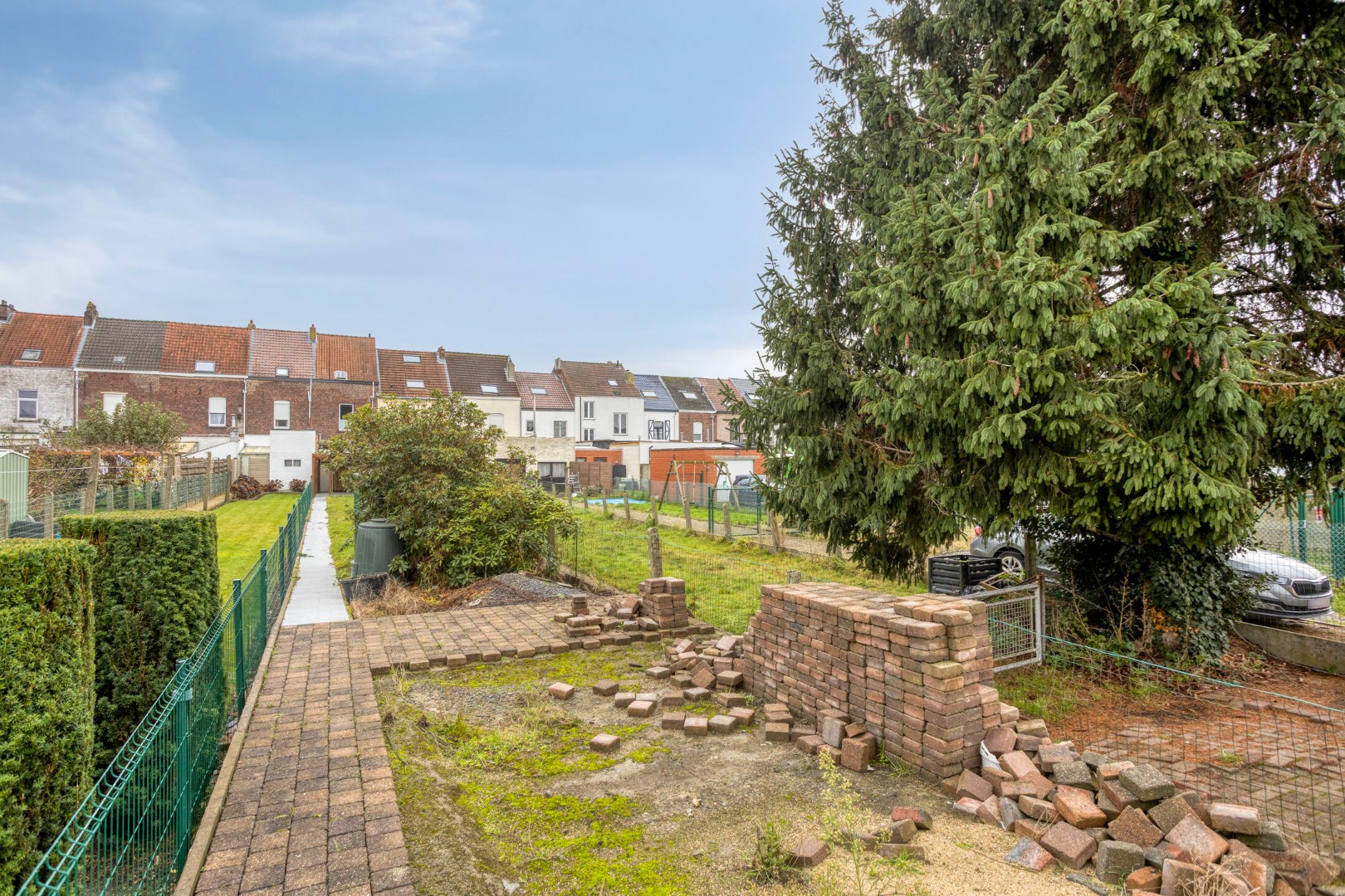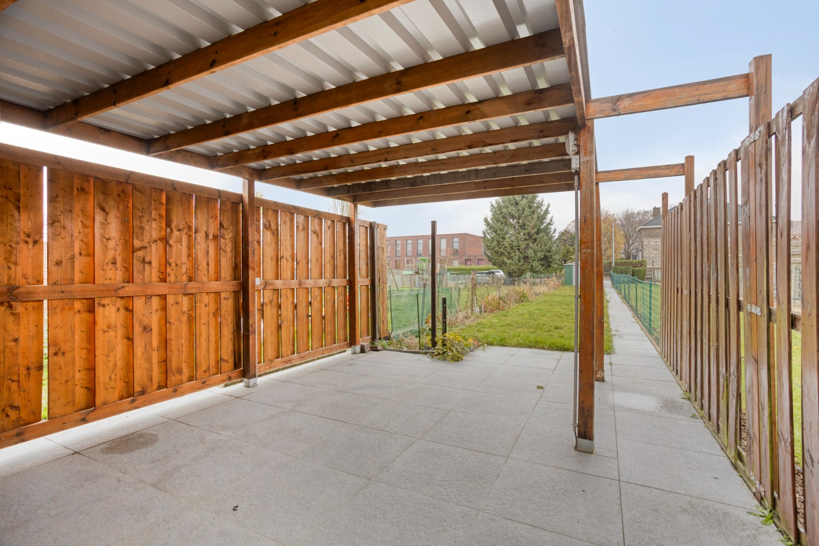 De woning heeft een omheinde tuin met ruim overdekt terras (40 m²). Parkeergelegenheid in de straat.