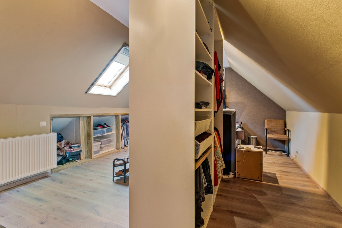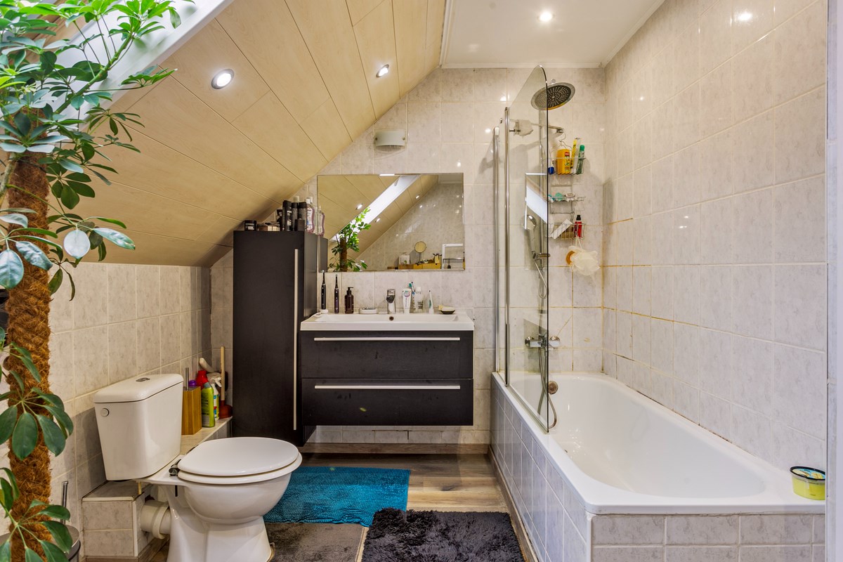 Eerste verdieping: overloop, 2 ruime slaapkamers met inbouwkasten en badkamer met onder andere een 2de toilet.