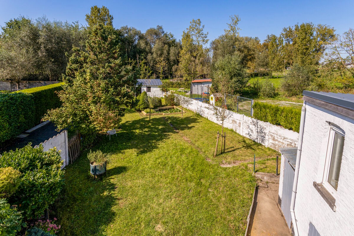 De tuin is volledig omheind met nog een tuinberging en vijver. Te bezoeken!