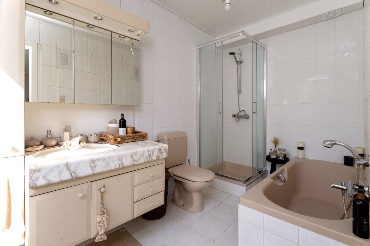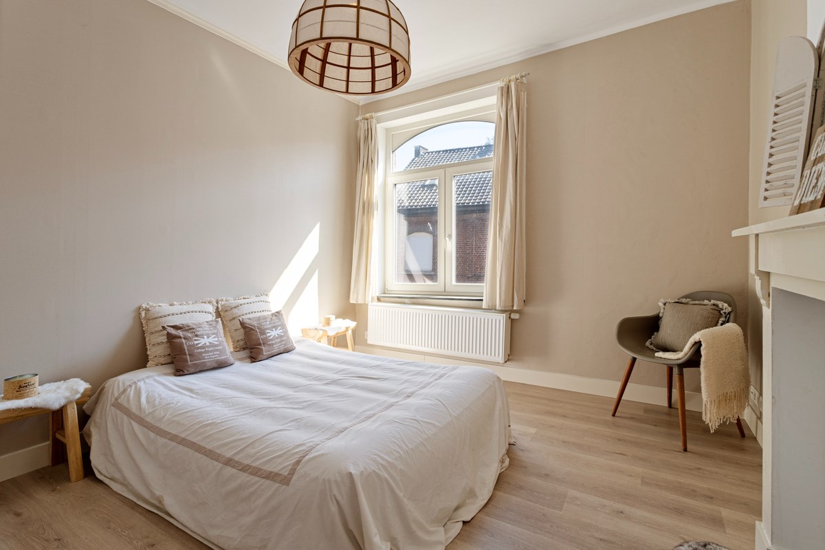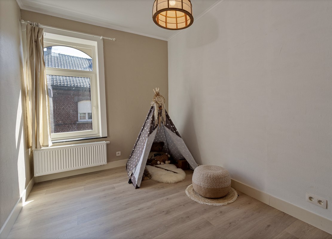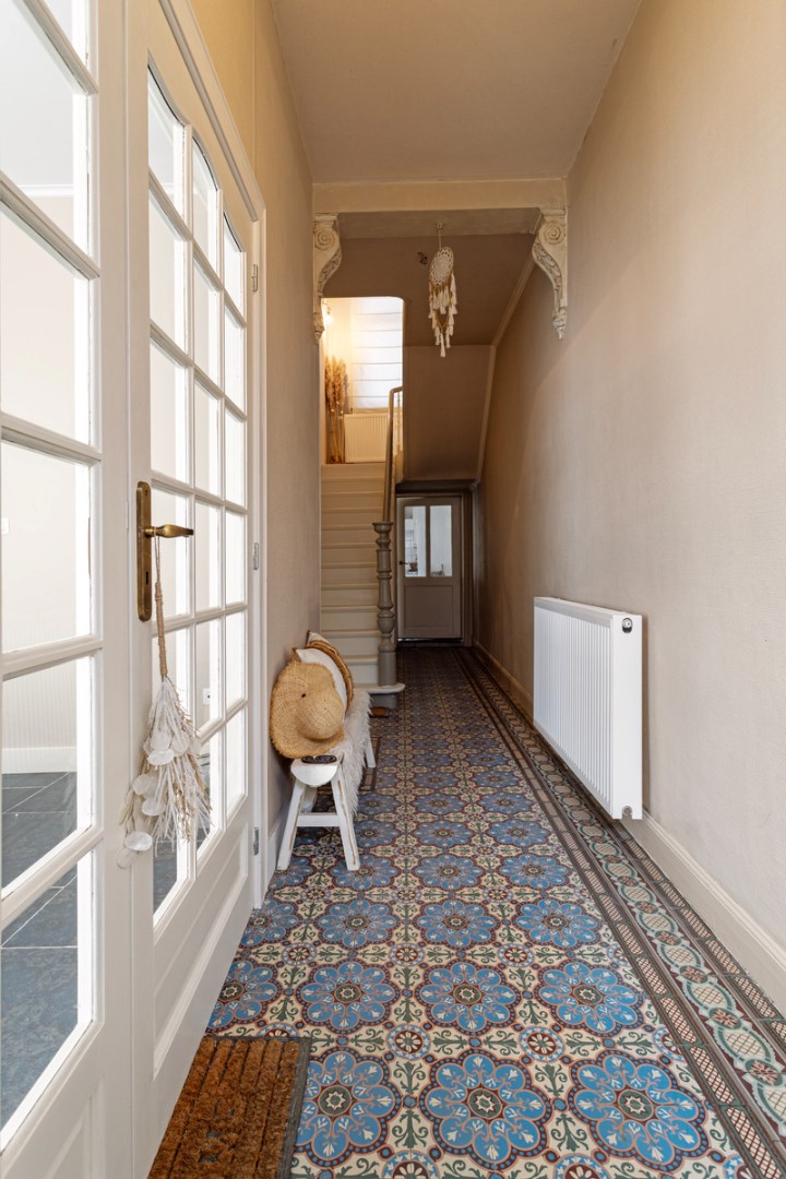 Indeling: imposante inkomhal met originele vloer, gezellig salon en afzonderlijke eetkamer, keuken met toegang tot zonnig terras en badkamer met bad, douche en toilet. Op de verdieping zijn er 3 slaapkamers (16m², 13m² en 10m²). De zolderverdieping is toegankelijk met vaste trap (56²) en kan nog makkelijk ingericht worden tot meerdere slaapkamers.