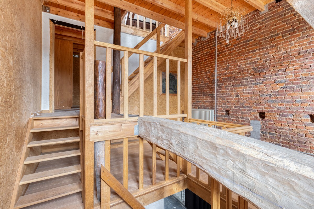 - Op het tussenverdiep: verdiep ingedeeld in verschillende ruimtes door trappen