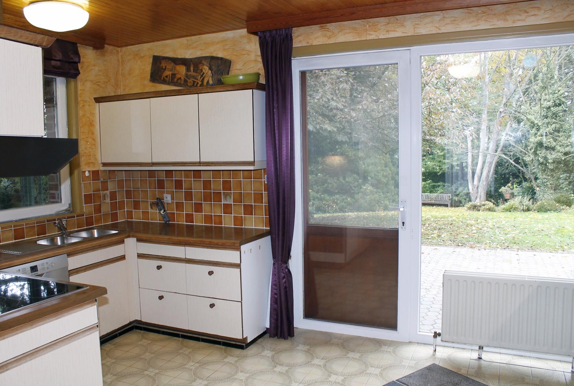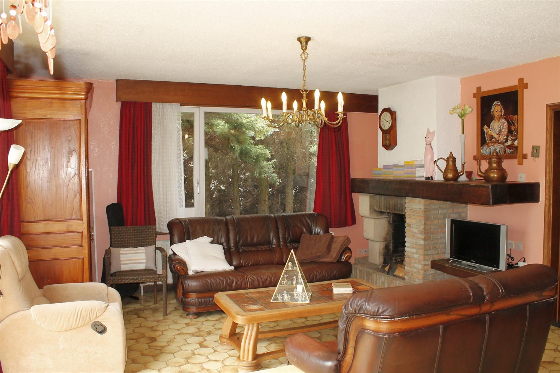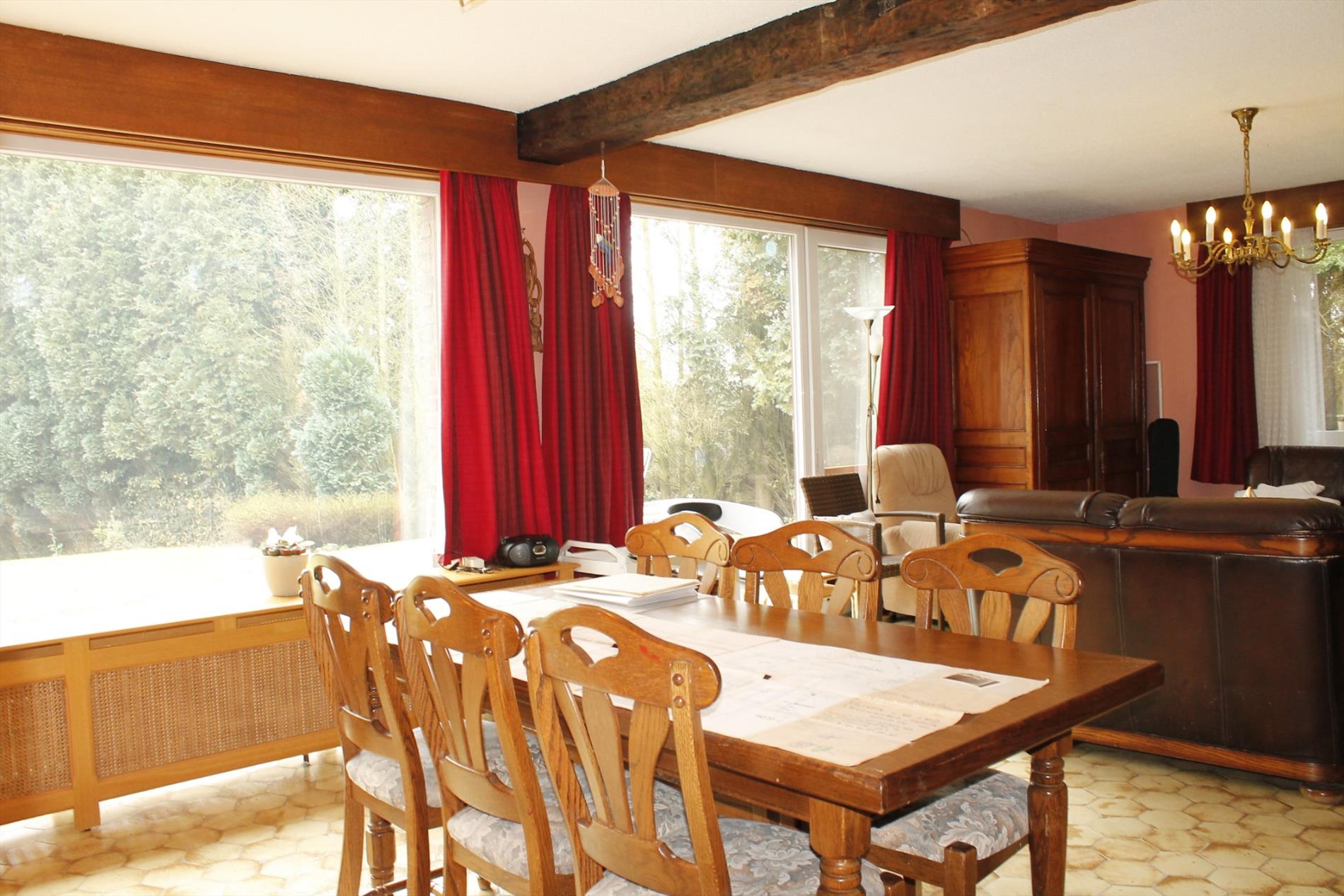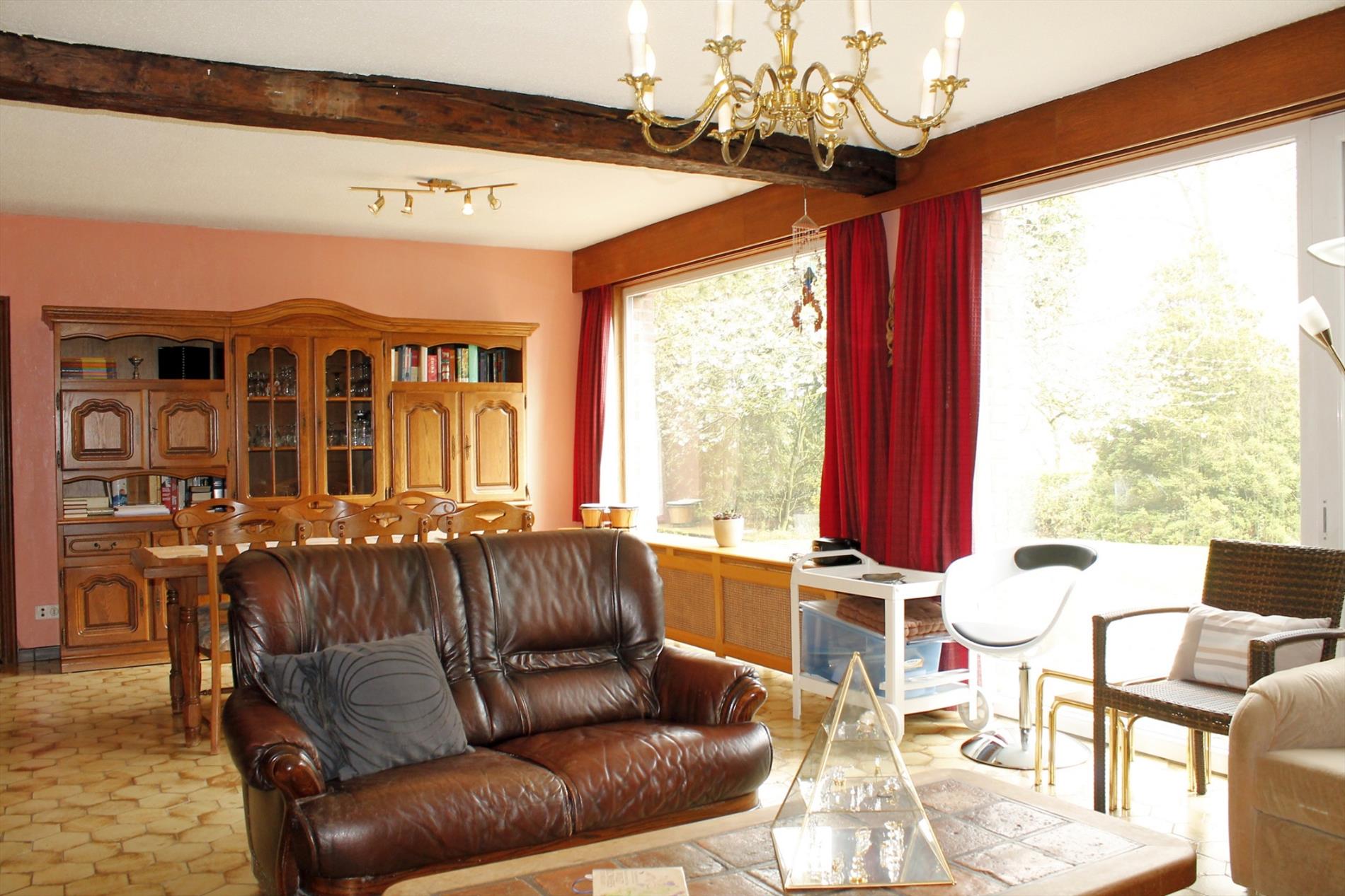 Ruime gelegen open bebouwing in rustige omgeving op 16,5 are. Ruime en rustig gelegen woning te Outer (Ninove), gelegen op een perceel van ca. 16 are 50. Deze woning bevat: woonkamer met open eetgedeelte (38m²), keuken (11,5m²), 4 slaapkamers (13,5m², 12,5m² en 12m² en 10m²) waarvan 1 ingericht als bureau en waarvan 2 met lavabo, toilet, badkamer met dubbele lavabo, toilet en bad (11,5m²), berging (5m²), wasplaats (12,5m²), kelder (20m²), kruipkelder en een garage voor 2 wagens (32m²). Recent vernieuwde verwarmingsinstallatie op gas (hoog rendement condensatieketel 2013). Dubbele beglazing (PVC). Er is mogelijkheid tot extra opbouw. Ideaal voor mensen die houden van een rustige, landelijke en groene omgeving.