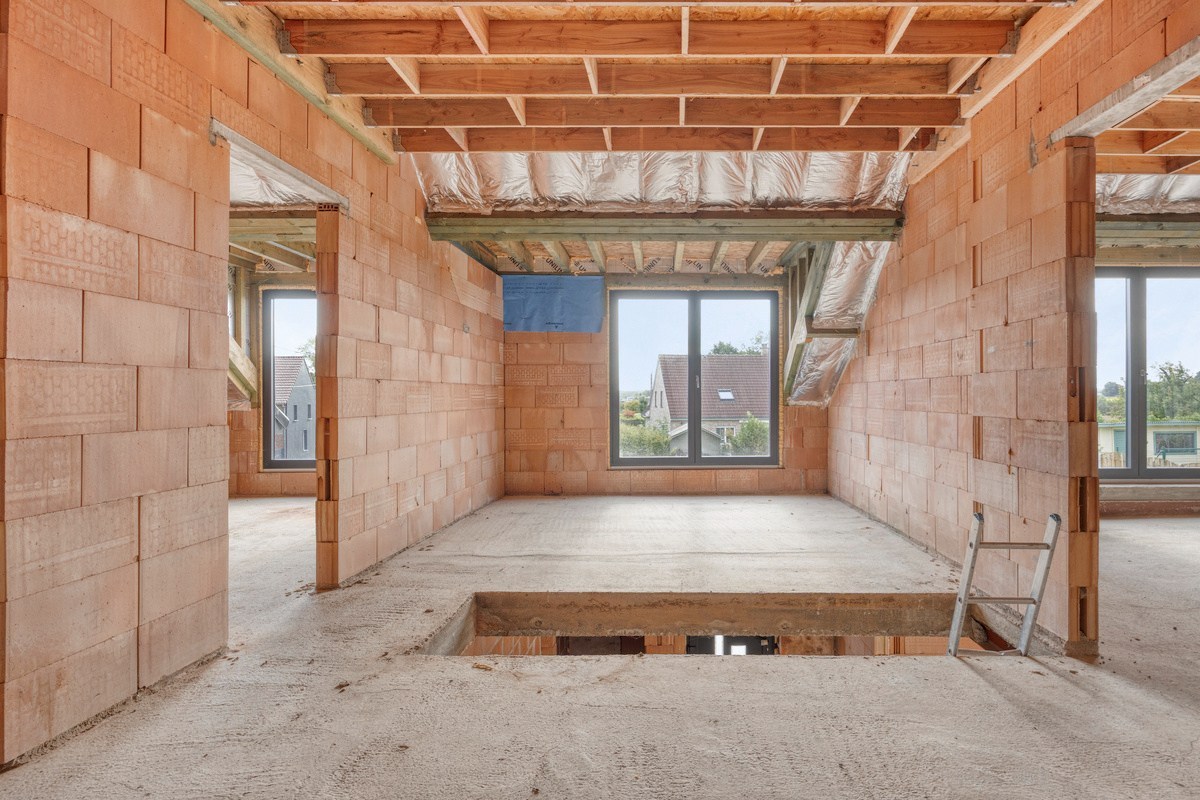 Indeling voorzien volgen plan: gelijkvloers (141 m²): inkomhal, ruime woonkamer met open keuken (58 m²), bering, toilet en garage; verdieping (141 m²): nachthal, 5 slaapkamers, toilet en badkamer; dakverdieping (70m²): zolderruimte. Deze indeling kan nog gewijzigd worden.
