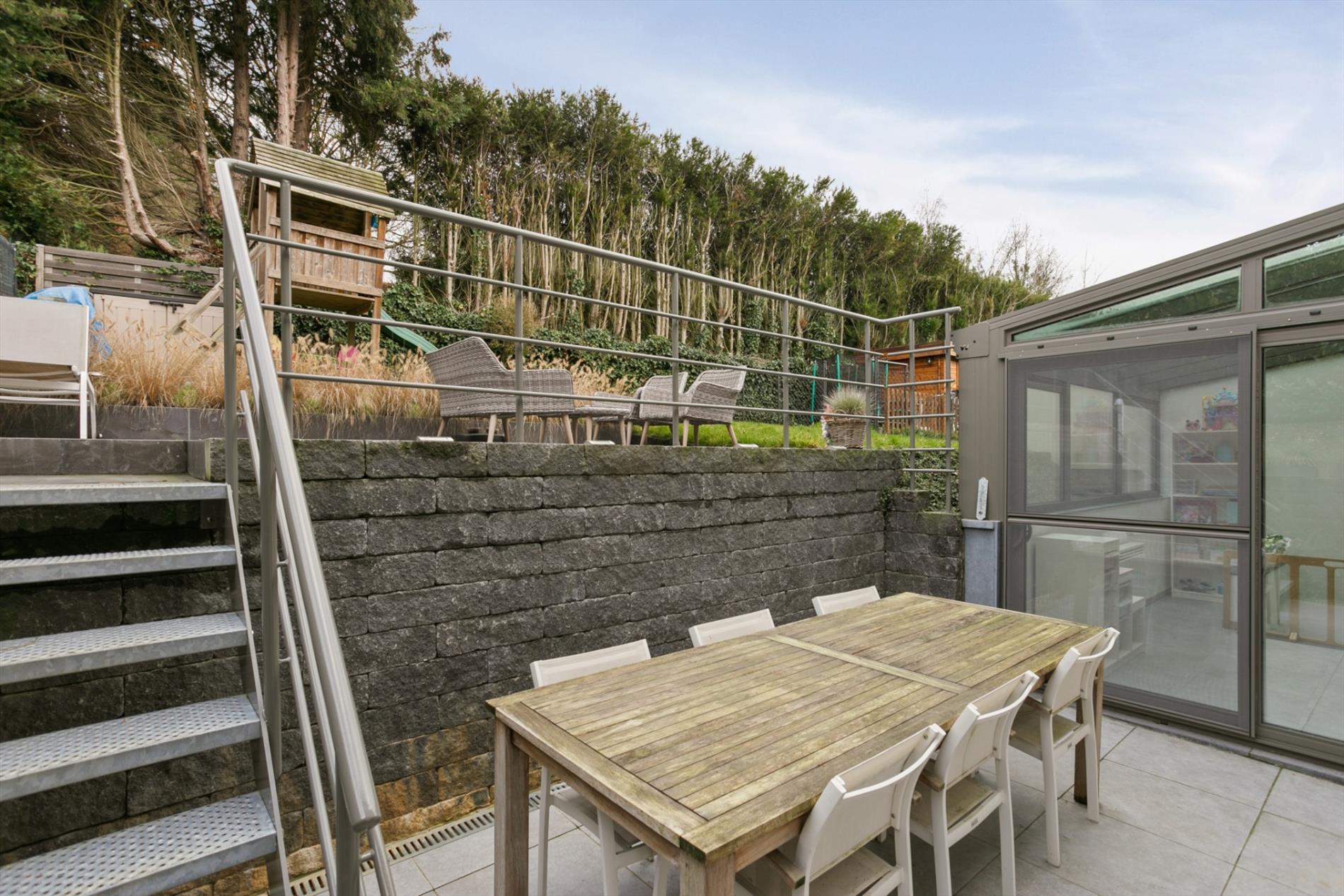 OPTIE Deze instapklare woning met 4 slaapkamers bevindt zich in een zeer rustige straat, nabij het centrum van Lennik. Indeling: Gelijkvloers: inkomhal, woonkamer (32 m²), keuken (20 m²), berging/wasplaats (15 m²), veranda (12 m²) en toilet; Eerste verdieping: nachthal, 4 slaapkamers (21 m², 15 m², 9 m² en 9 m²) en badkamer (12 m²); Benedenverdieping: kelder (14 m²) en garage met automatische poort (24 m²). De woning beschikt tevens nog over een zolder, een terras en een zonneterras. De tuin is omheind en voor de woning is er een ruime oprit voor het plaatsen van uw auto. VCRO: Vg/Wglk/Gmo/Gvkr/Gvv