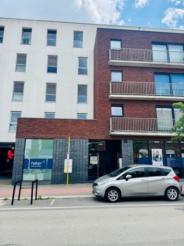 Plan uw bezoek zelf in op www.woonkantoor.be. U hoeft niet te bellen of te mailen. Appartement van 100m² met twee slaapkamers op de eerste verdieping (geen lift). Gelegen op wandelafstand van bank, kapper, grootwarenhuis Delhaize en openbaar vervoer. Indeling: inkomhal met toilet en vestiaire, leefruimte (25 m²), keuken (ingericht met toestellen), twee ruime slaapkamers van 12 m² en 17 m² en badkamer met ligbad en enkele lavabo. Geen terras. Maandelijkse kost van 95 euro. Hierin is gebruik gemene delen en zijn uw privé verbruik water en verw …